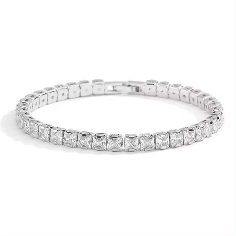 Βραχιόλι με τετραγωνισμένα λευκά zircon -BR134