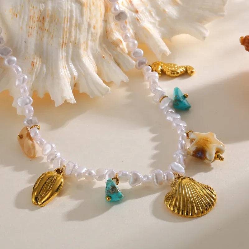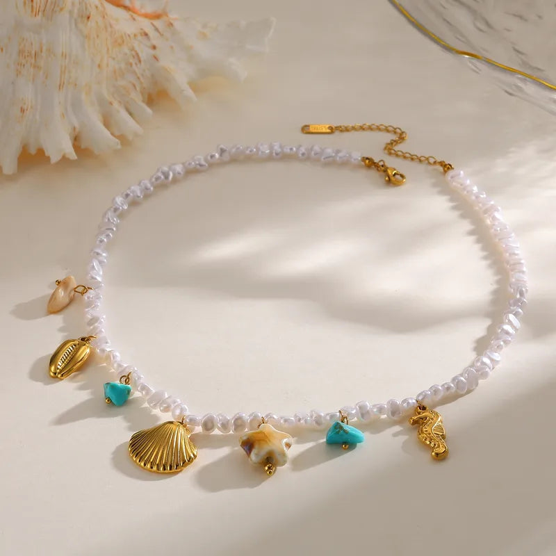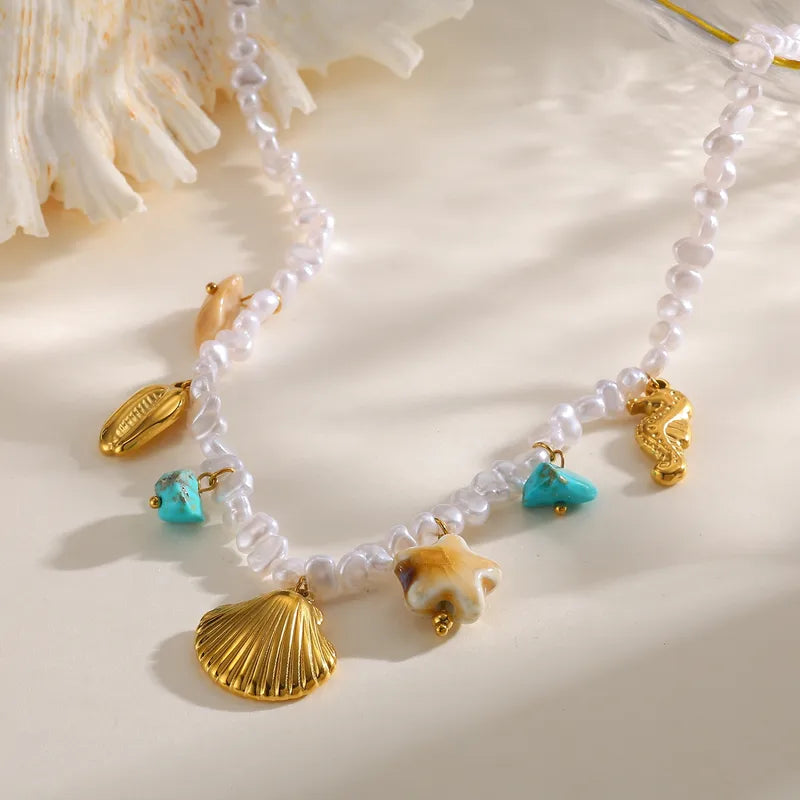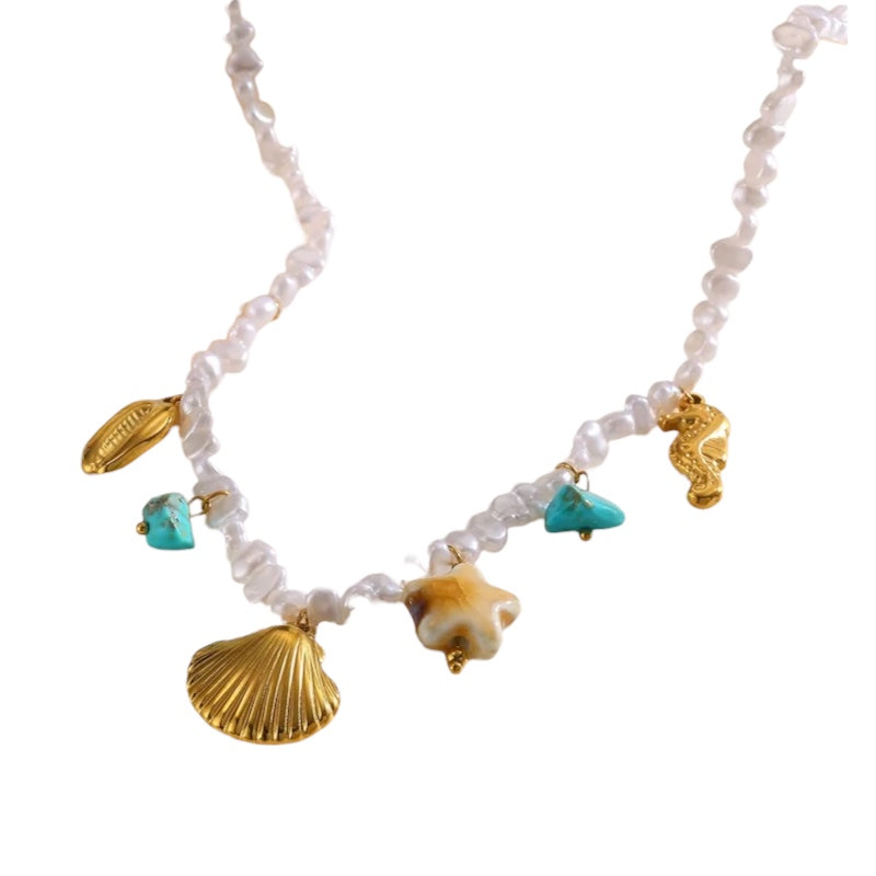 Κολιέ ατσάλινο με πέρλες και charms - NE776