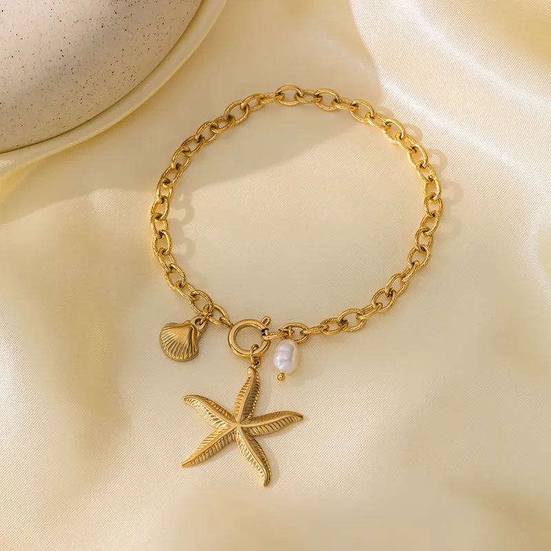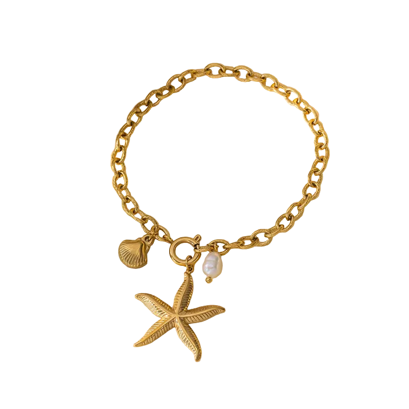 Βραχιόλι επιχρυσωμένο ατσάλι με αστερία και κοχύλι - BR415