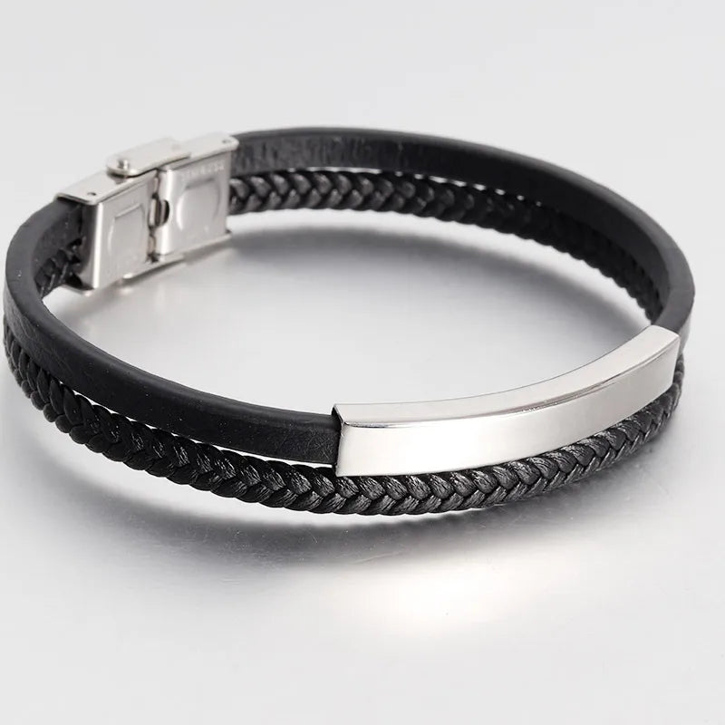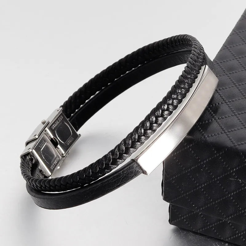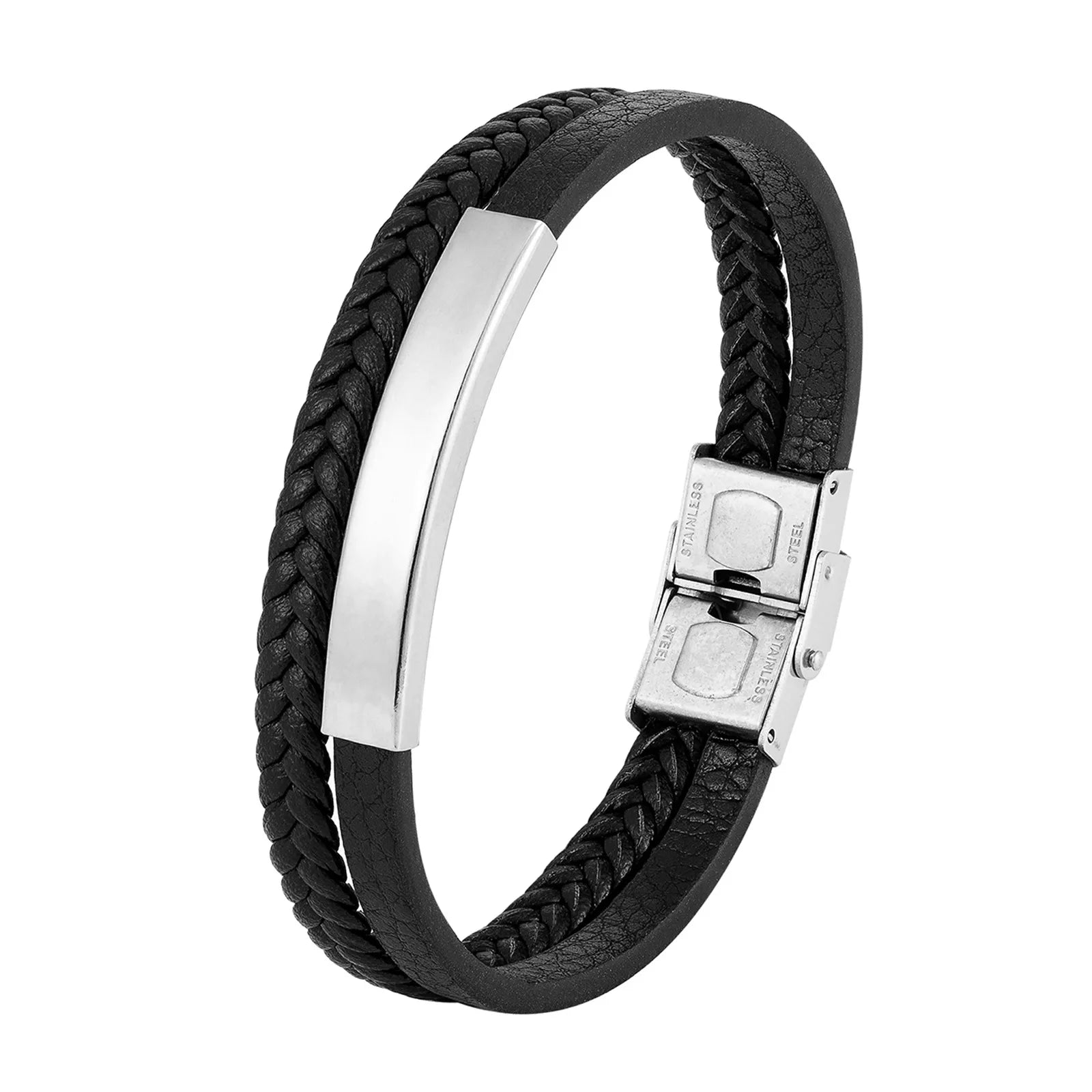 Βραχιόλι μαύρο με ατσάλι-BR185