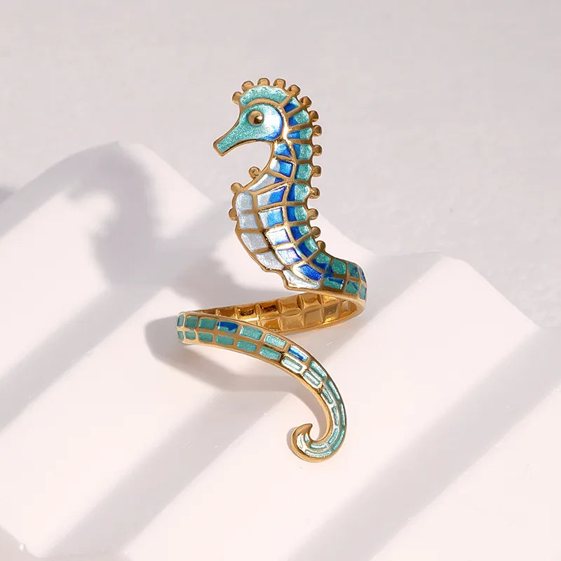 Δαχτυλίδι επιχρυσωμένο ατσάλι ιππόκαμπος- R378