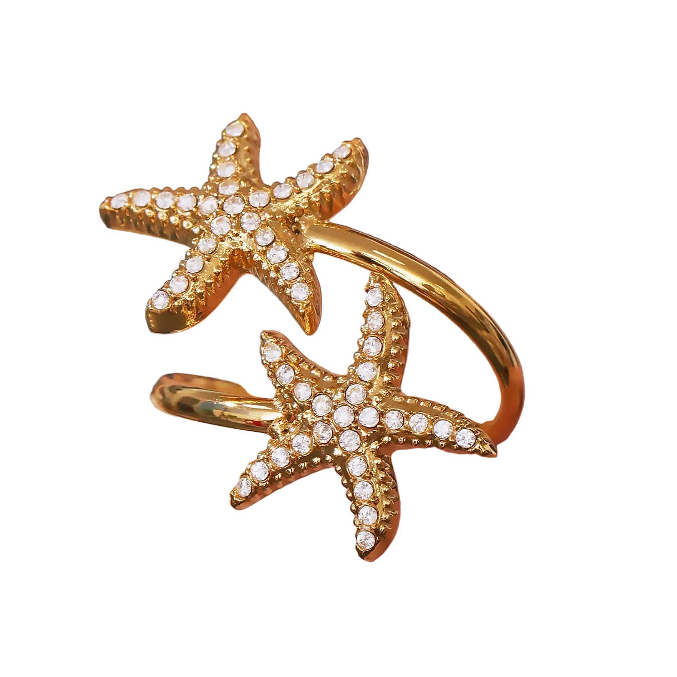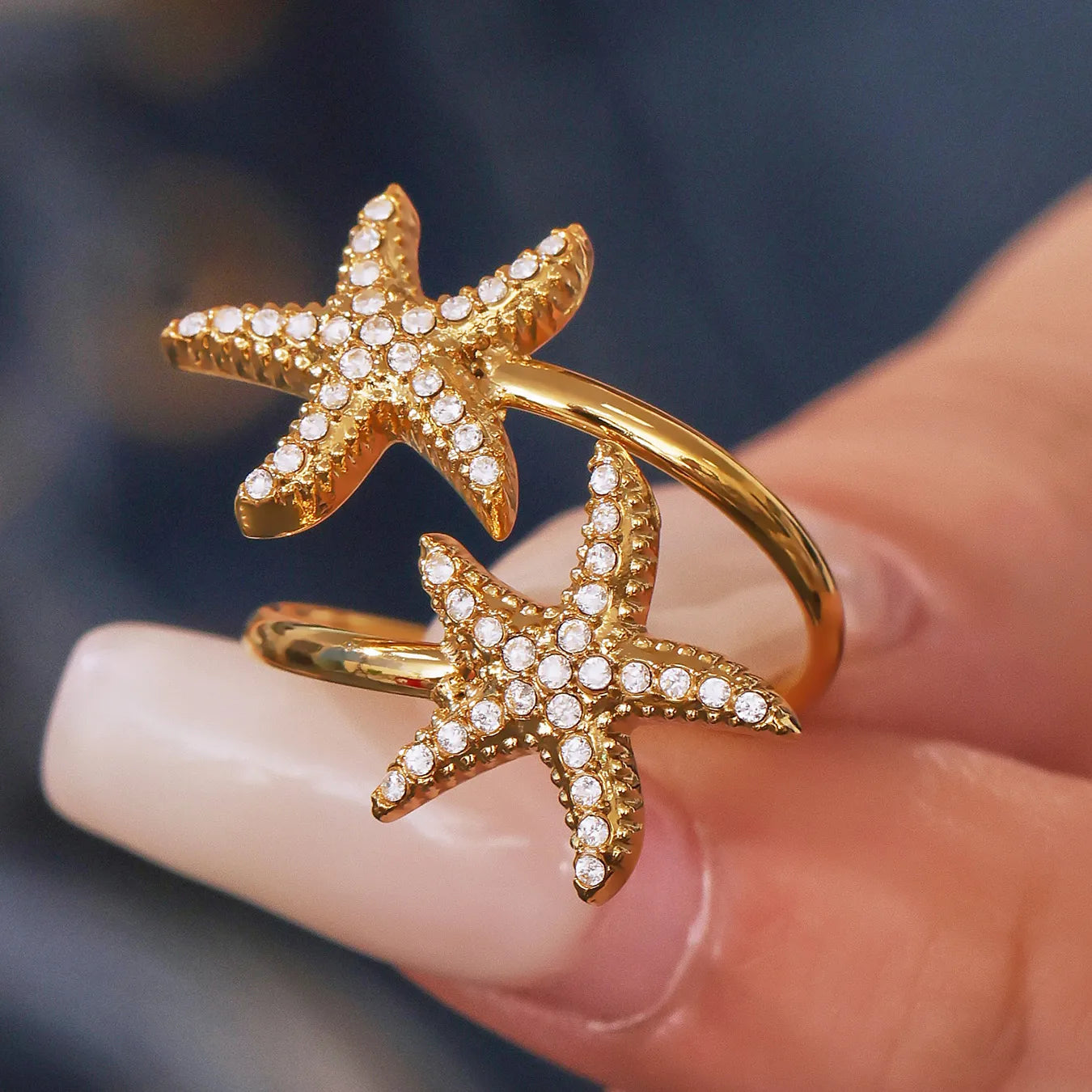 Δαχτυλίδι επιχρυσωμένο ατσάλι με αστερία και zircon - R375