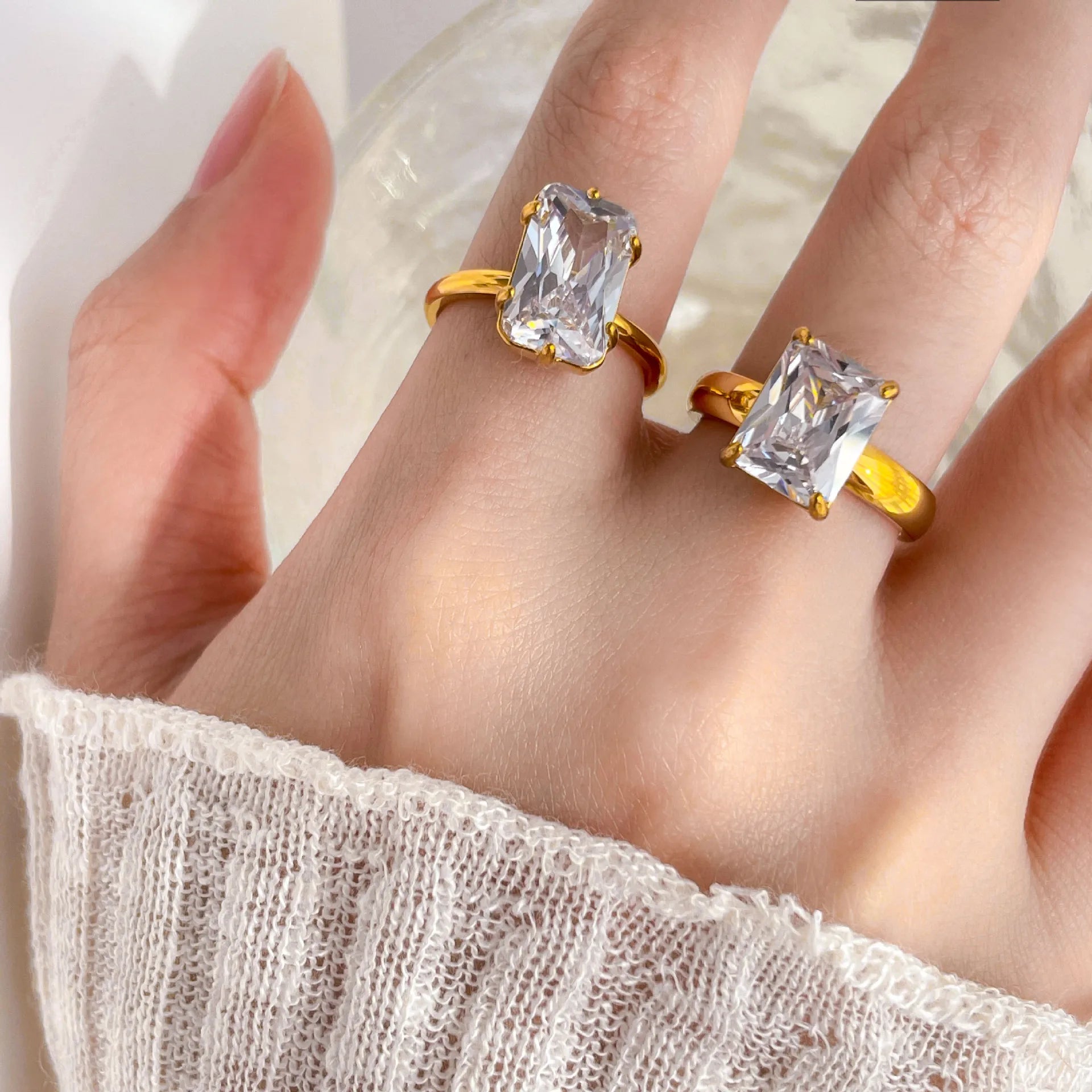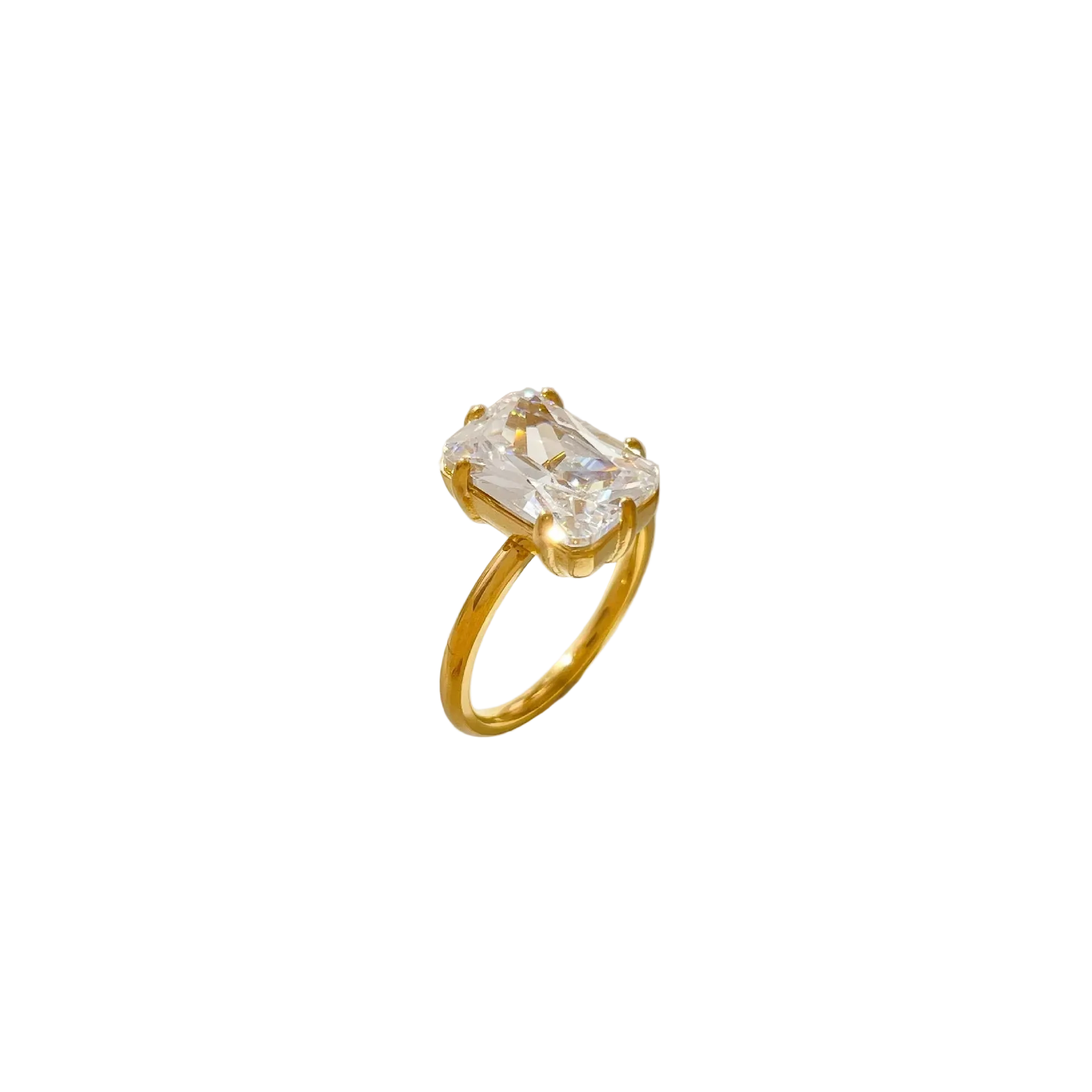 Δαχτυλίδι επιχρυσωμένο ατσάλι με ορθογώνιο zircon-R125