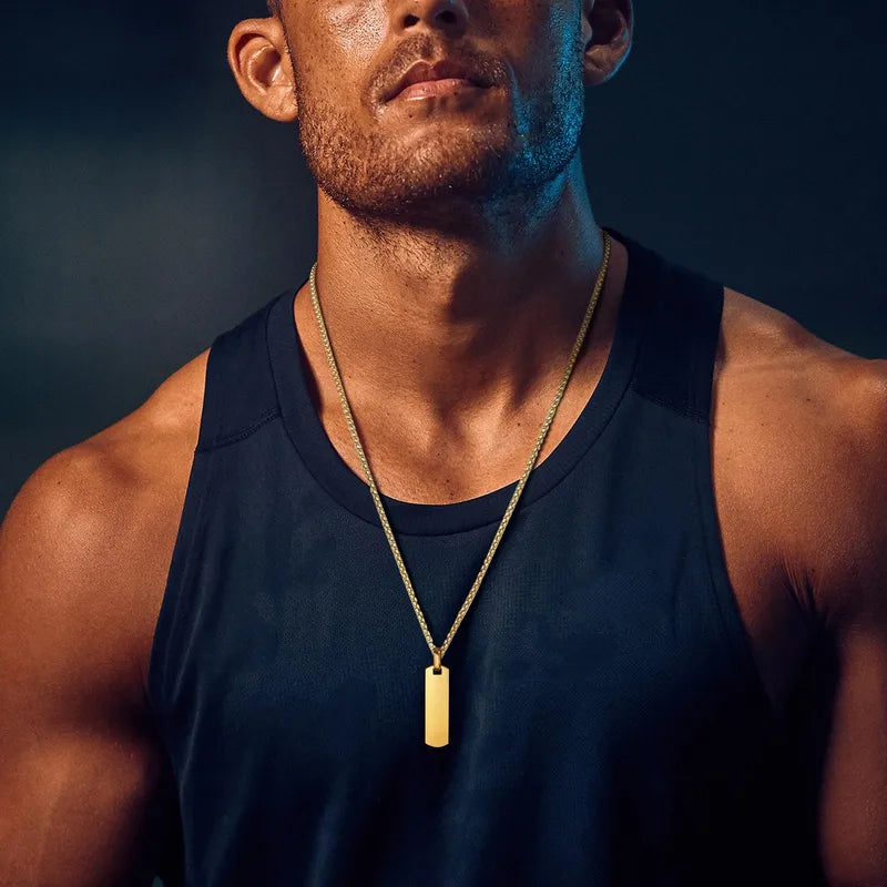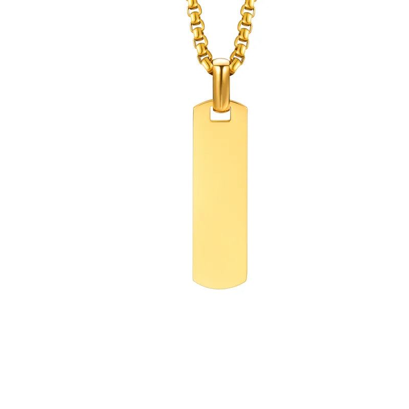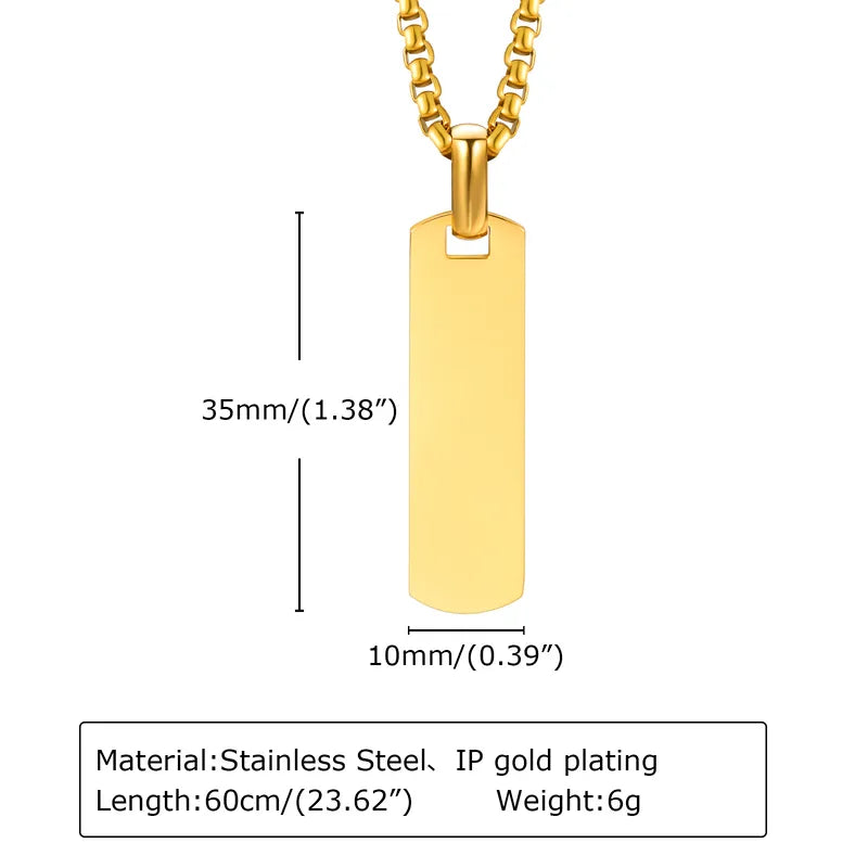 Κολιέ ατσάλι χρυσή μακρόστενη ταυτότητα-NE512