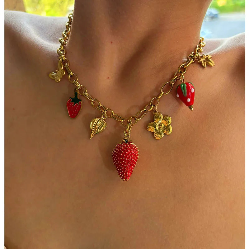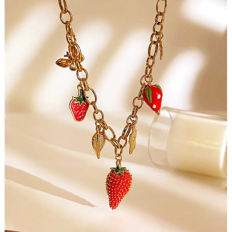 Κολιέ επιχρυσωμένο ατσάλι με φράουλες- NE687