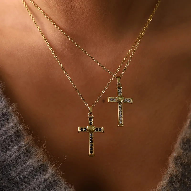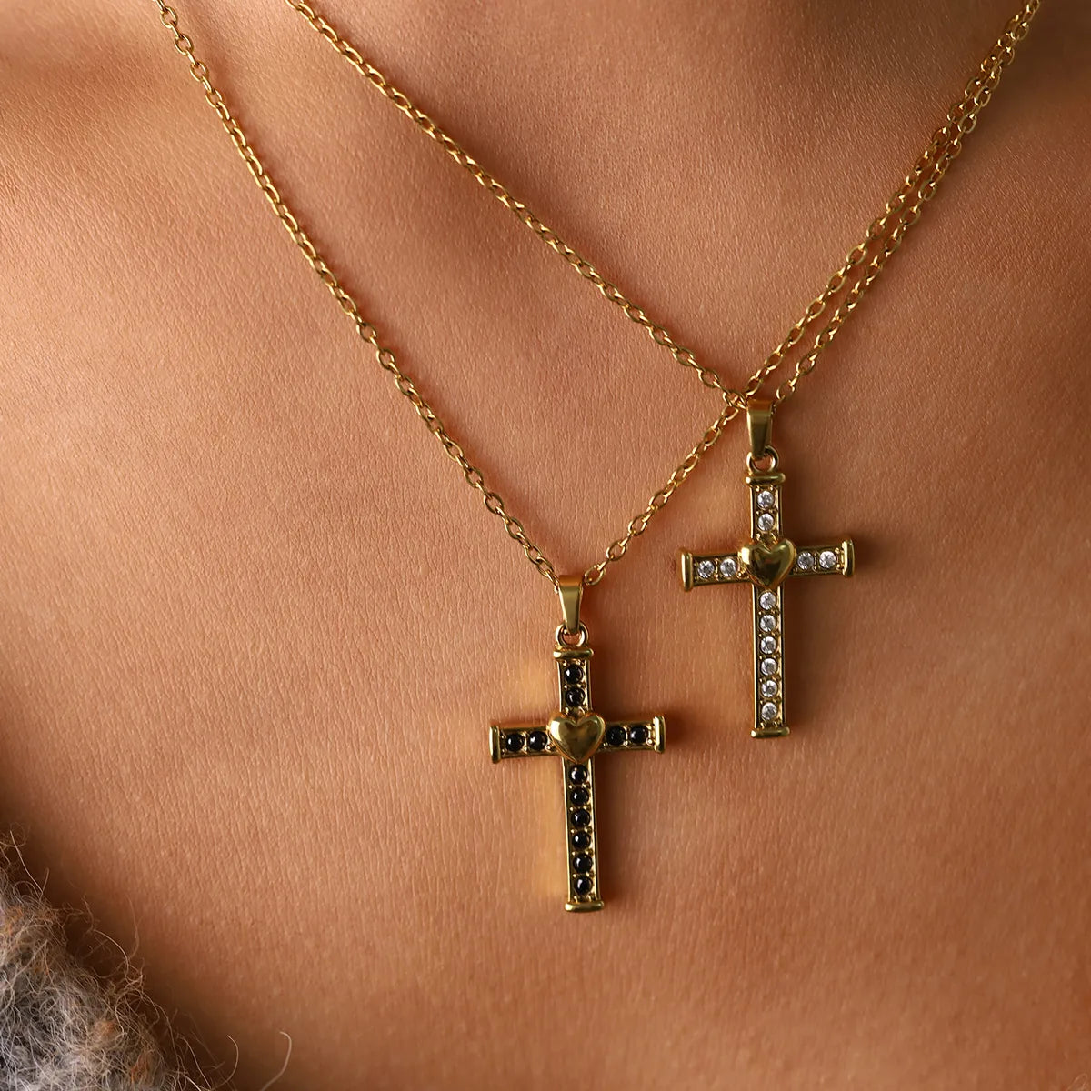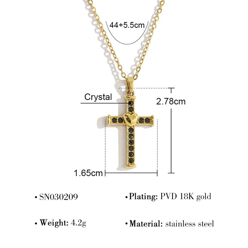 Κολιέ επιχρυσωμένο ατσάλι σταυρός με μαύρα zircon-NE300