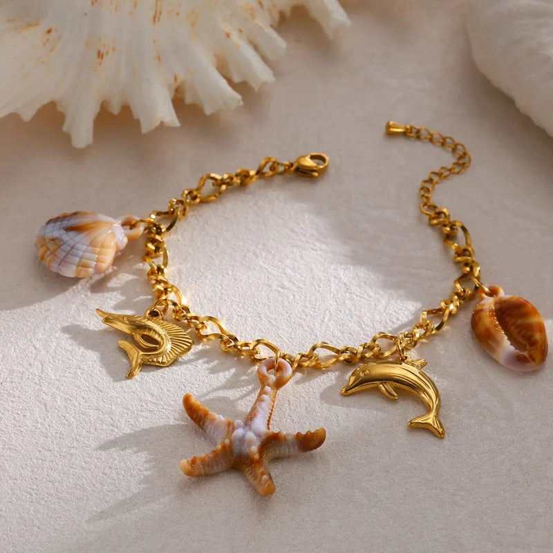 Βραχιόλι ατσάλινο με αστερία καφέ - br220