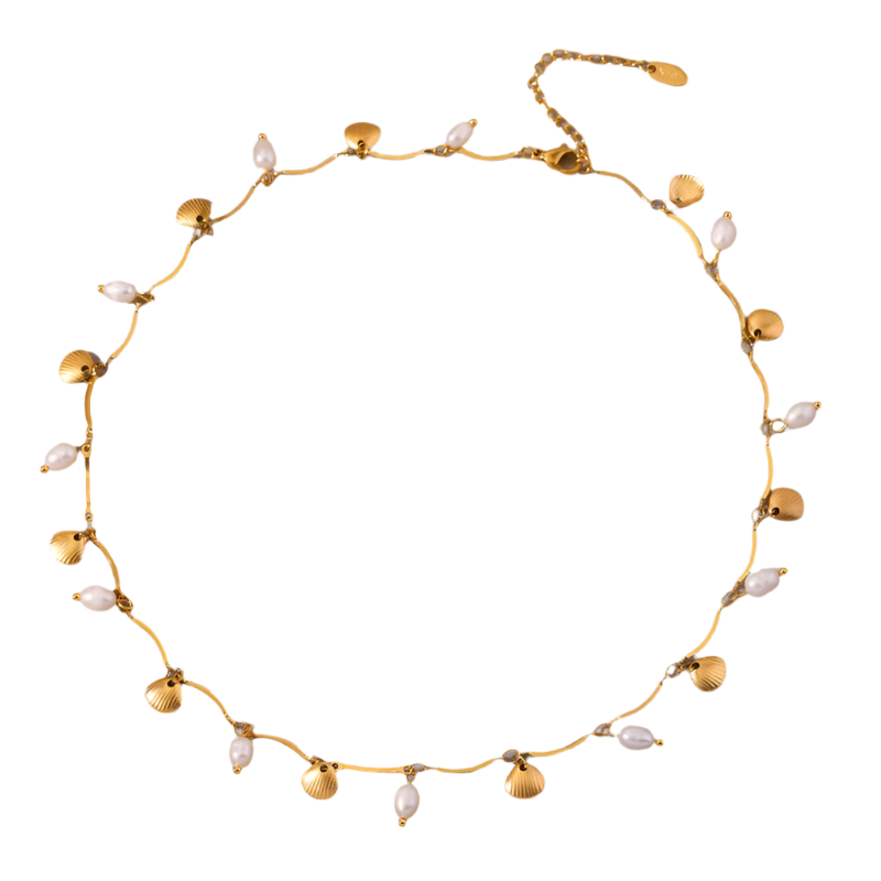 Κολιέ επιχρυσωμένο ατσάλι με πέρλες και χρυσά κοχύλια- NE702