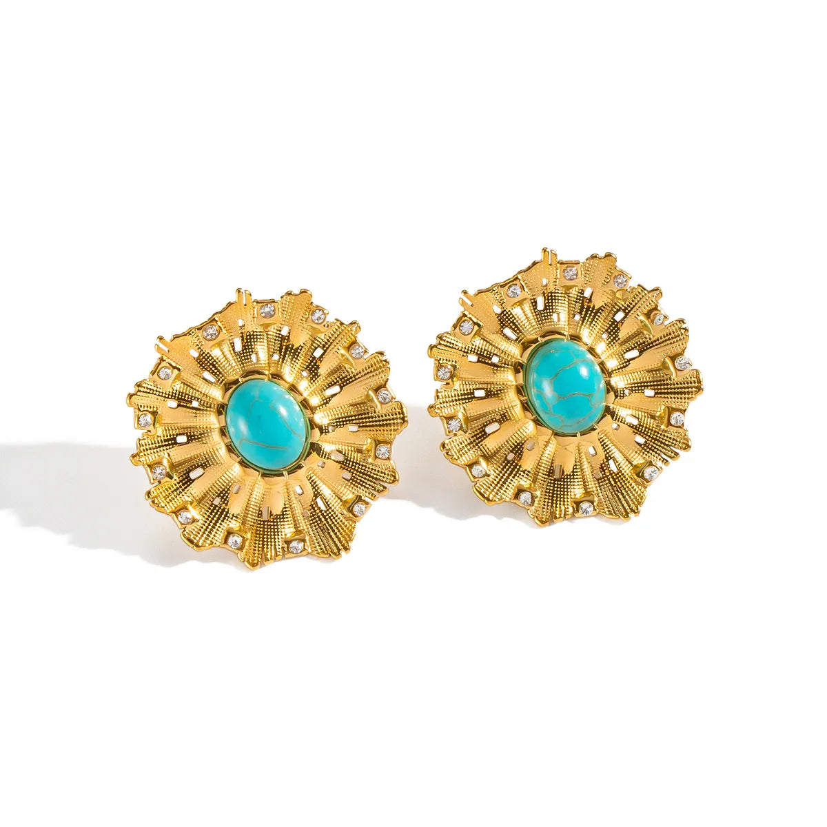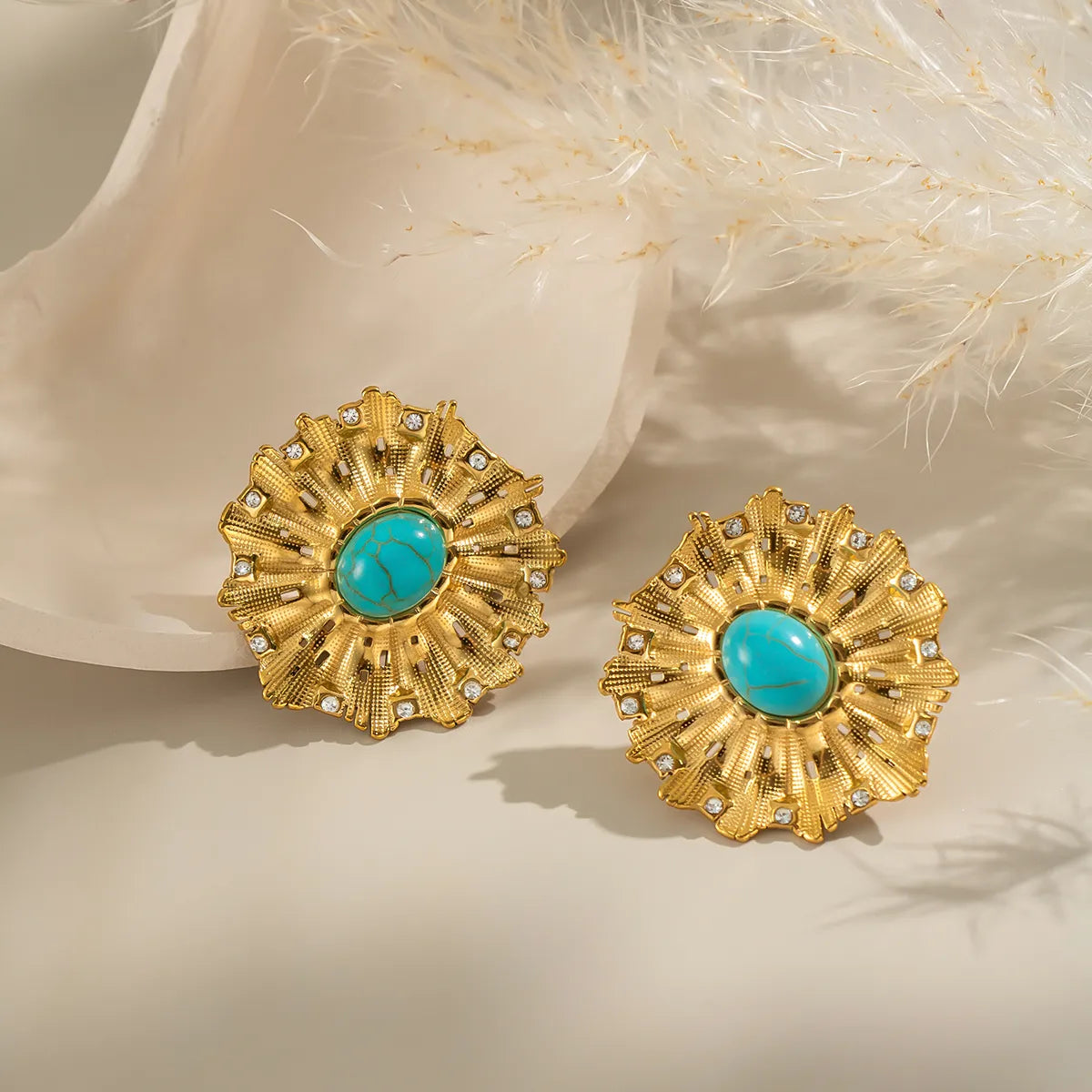 *Σκουλαρίκια ατσάλινα με τιρκουάζ πέτρα - ea043