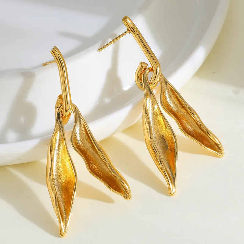 Σκουλαρίκια επιχρυσωμένο ατσάλι φύλλα-EA428