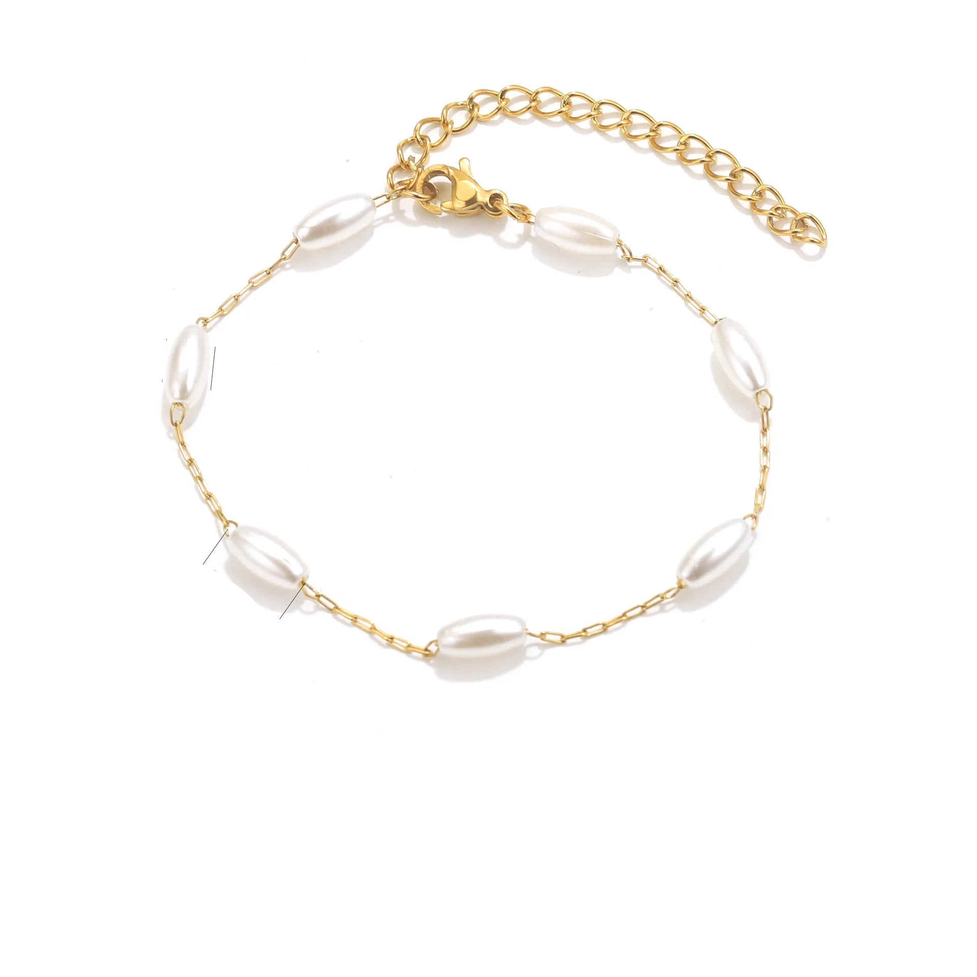 Βραχιόλι χρυσό ατσάλι με οριζόντιες πέρλες-BR240