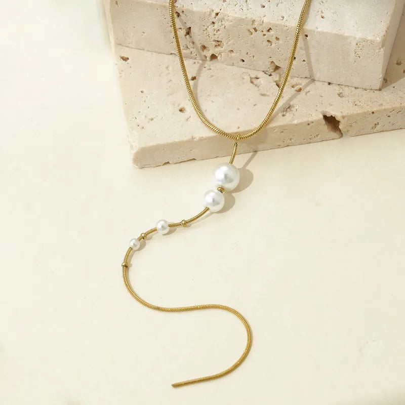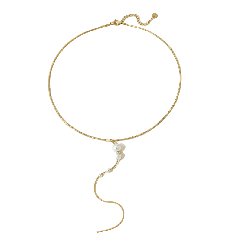 Κολιέ επιχρυσωμένο ατσάλι μακρύ με πέρλες-NE464