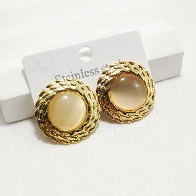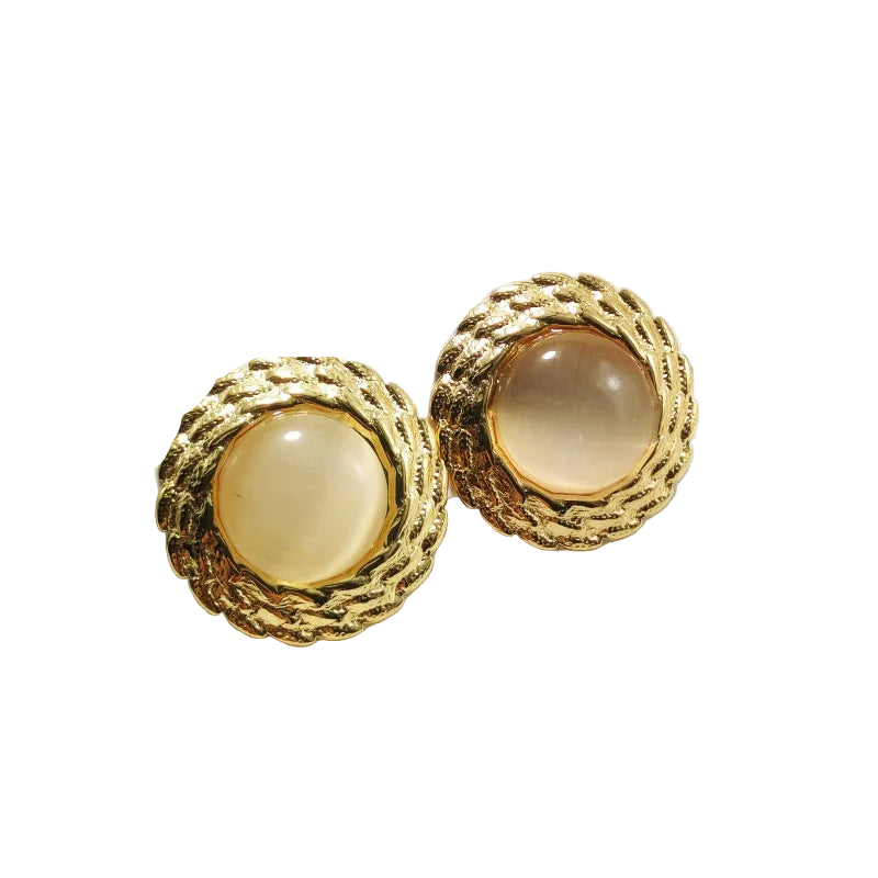 Σκουλαρίκια επιχρυσωμένο ατσάλι στρόγγυλα κρεμ-EA517