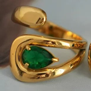 Δαχτυλίδι επιχρυσωμένο ατσάλι ανοιχτό με πράσινη πέτρα-R224