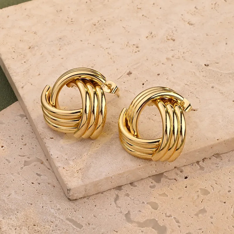 *Σκουλαρίκια επιχρυσωμένο ατσάλι παράλληλες καμπύλες-EA033