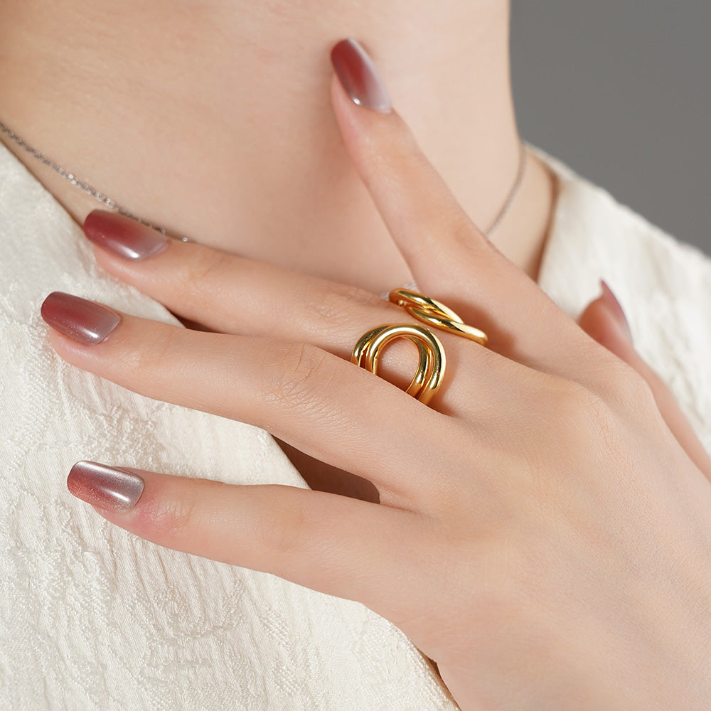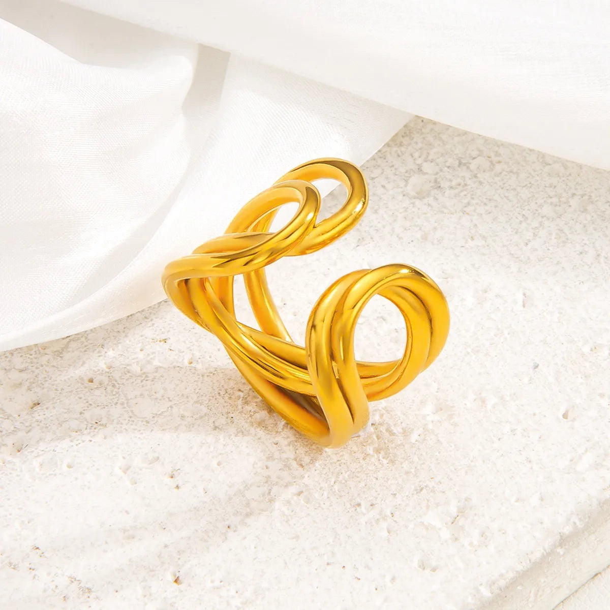 Δαχτυλίδι επιχρυσωμένο ατσάλι με πλέγμα-R270