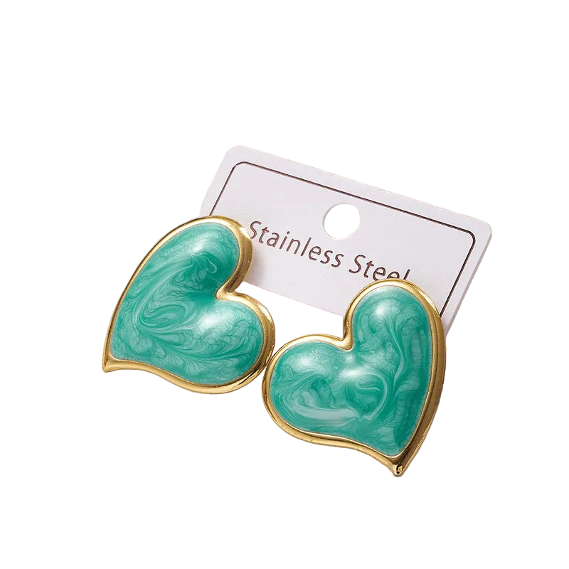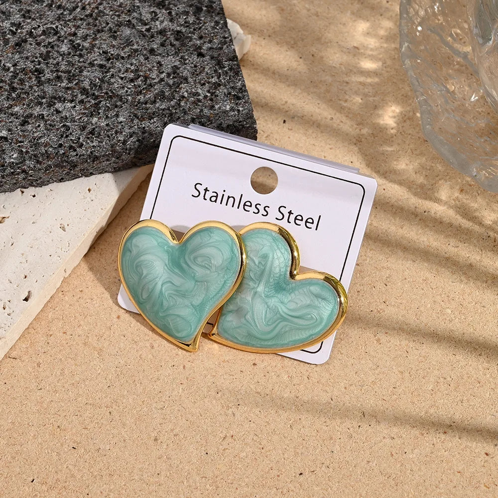 Σκουλαρίκια ατσάλινες τιρκουάζ καρδιές - EA364