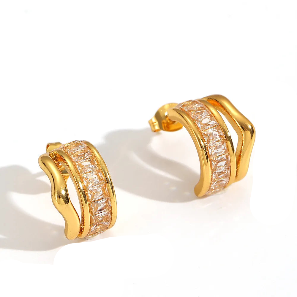 Σκουλαρίκια επιχρυσωμένο ατσάλι κρίκος με zircon-EA464