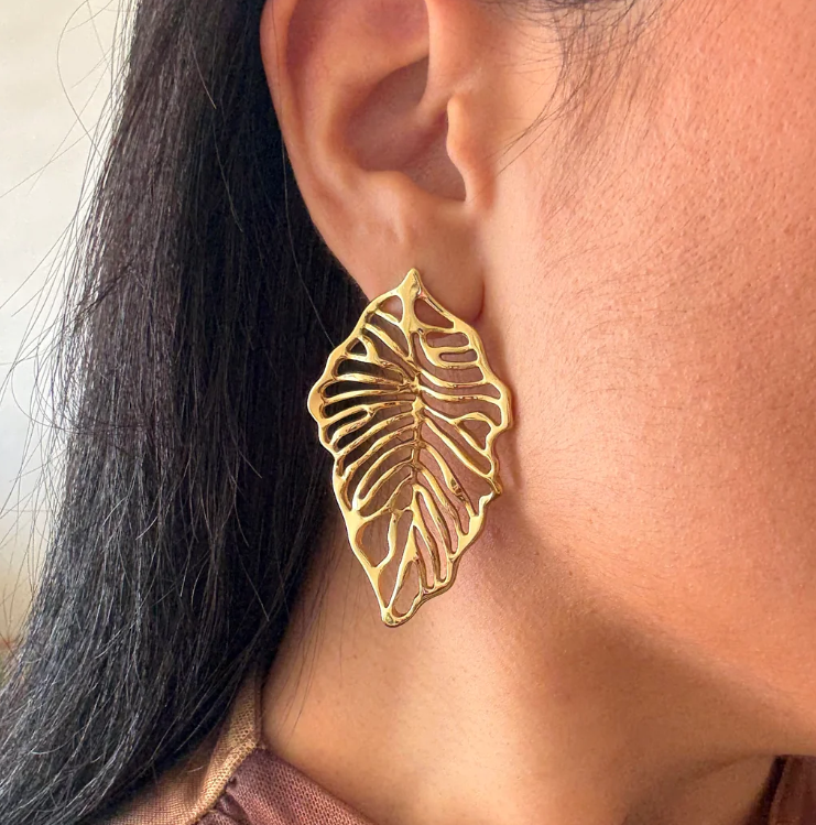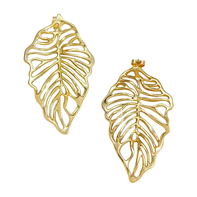 Σκουλαρίκια επιχρυσωμένο ατσάλι περίγραμμα φύλλου-EA310