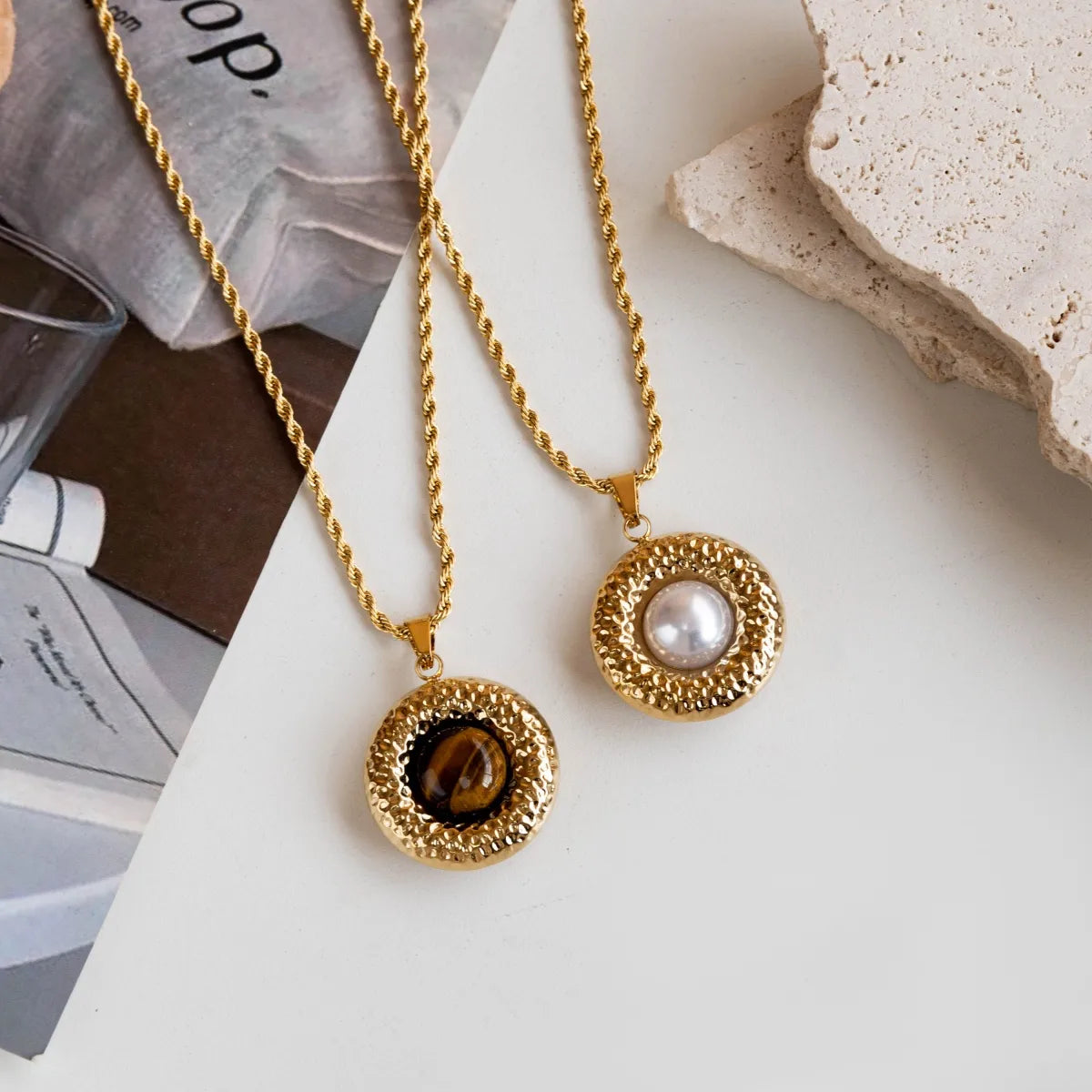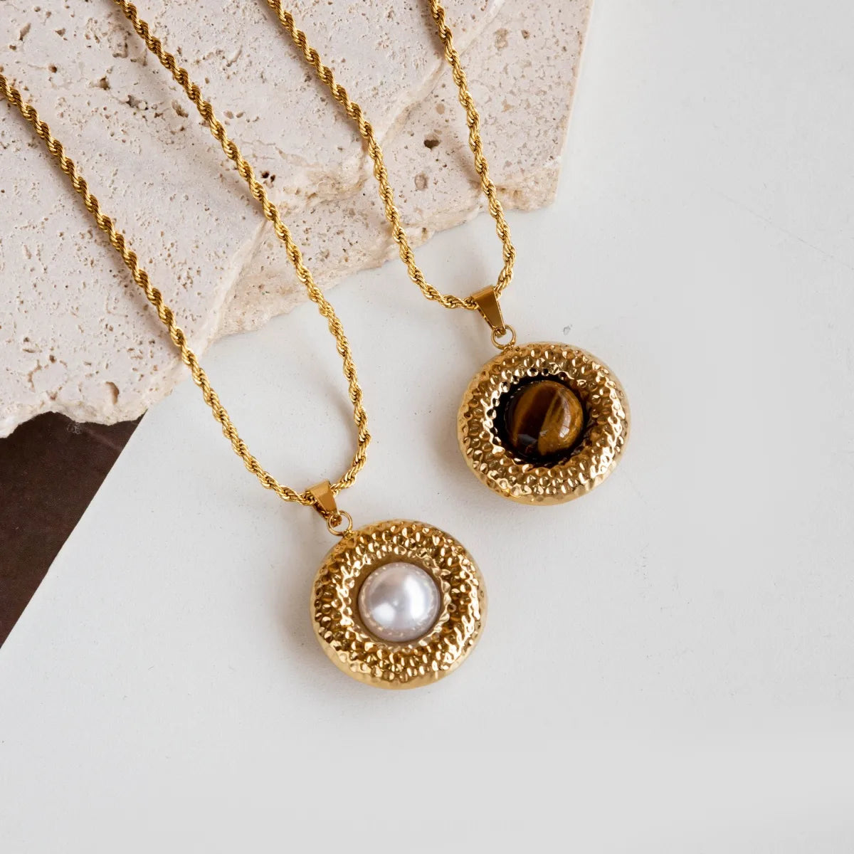 Κολιέ επιχρυσωμένο ατσάλι στρόγγυλο με καφέ-NE175