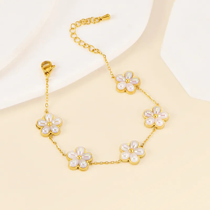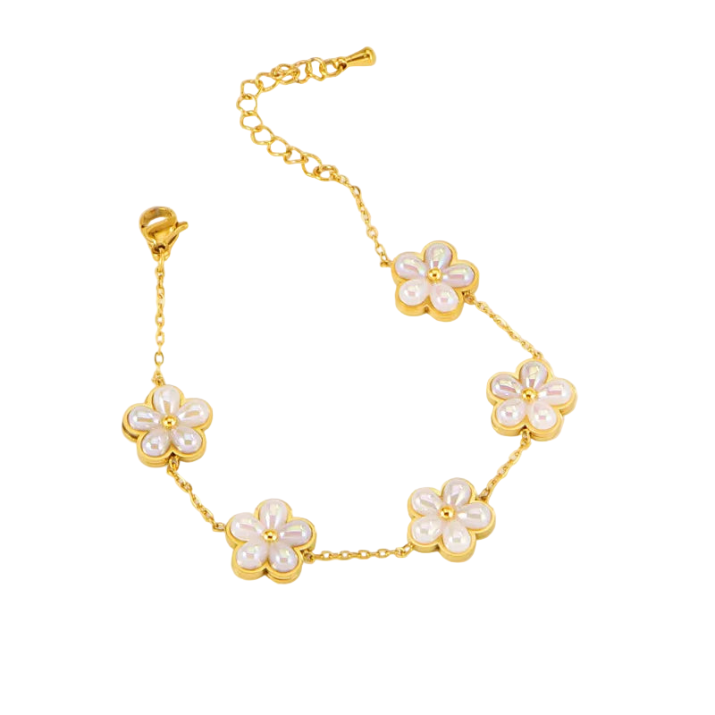 Βραχιόλι χρυσό ατσάλι με περλέ λουλούδια-BR171