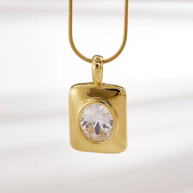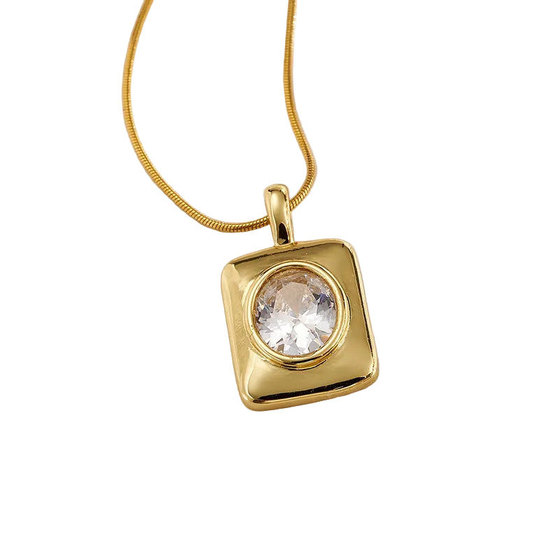 Κολιέ επιχρυσωμένο ατσάλι με μεγάλο zircon-NE115
