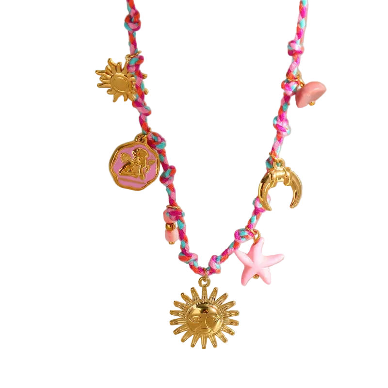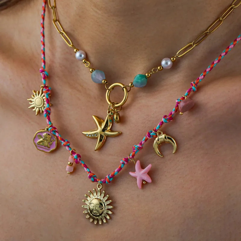 Κολιέ επιχρυσωμένο ατσάλι ροζ με charms-NE640