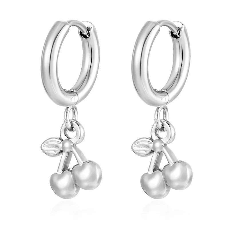 Σκουλαρίκια ατσάλινα με κερασάκια ασημί - w521