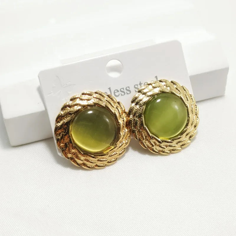 Σκουλαρίκια επιχρυσωμένο ατσάλι στρόγγυλα πράσινα-EA280