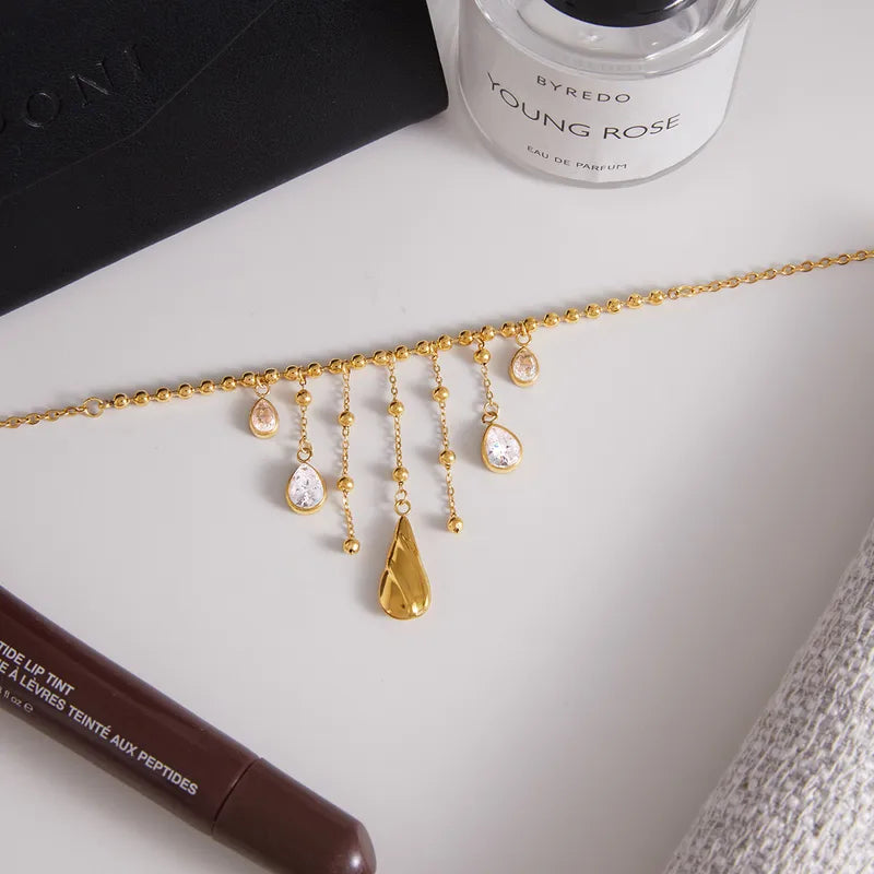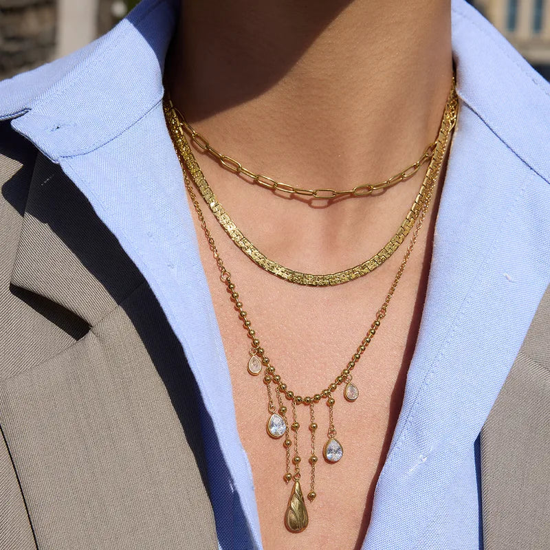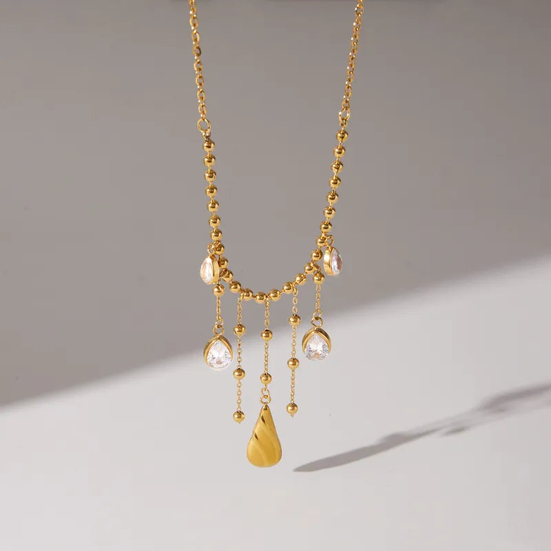 Κολιέ επιχρυσωμένο ατσάλι με zircon - NE736
