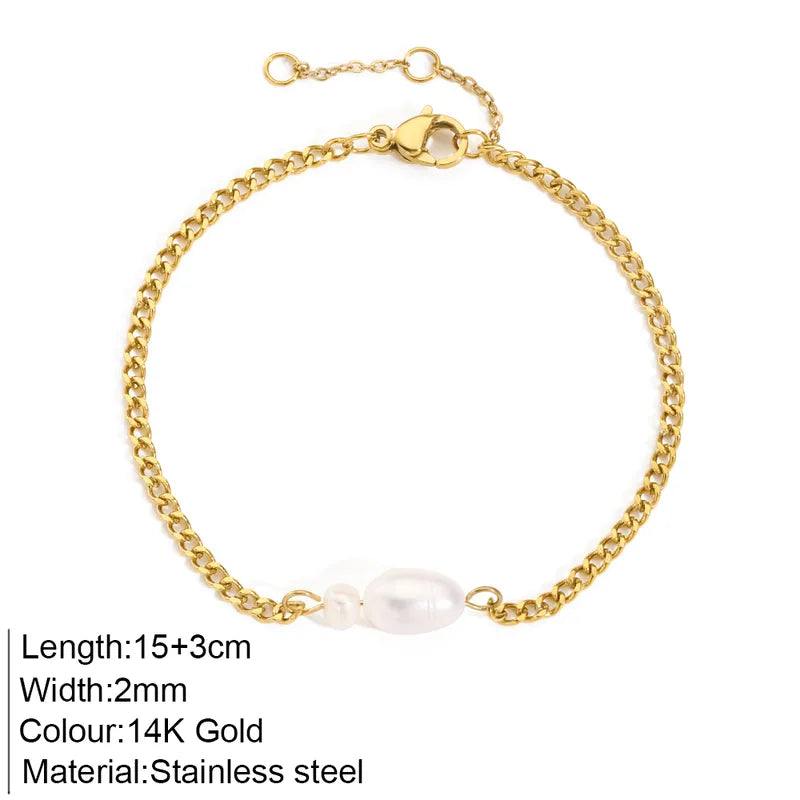Βραχιόλι χρυσό ατσάλι αλυσίδα με περλίτσα - BR348