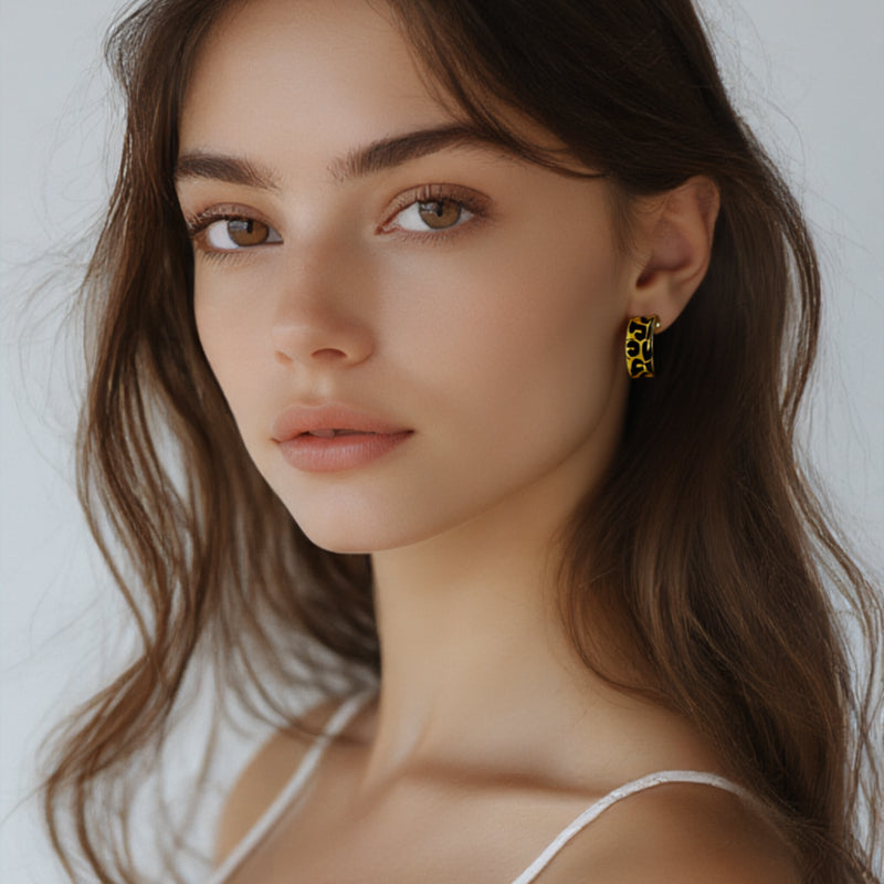 Σκουλαρίκια χρυσό ατσάλι λεοπάρ-EA332