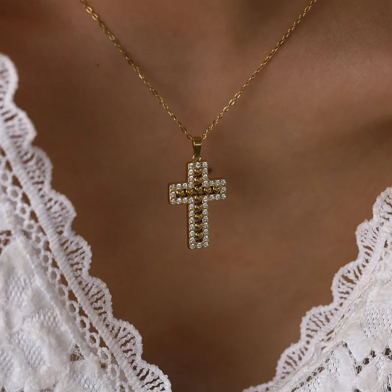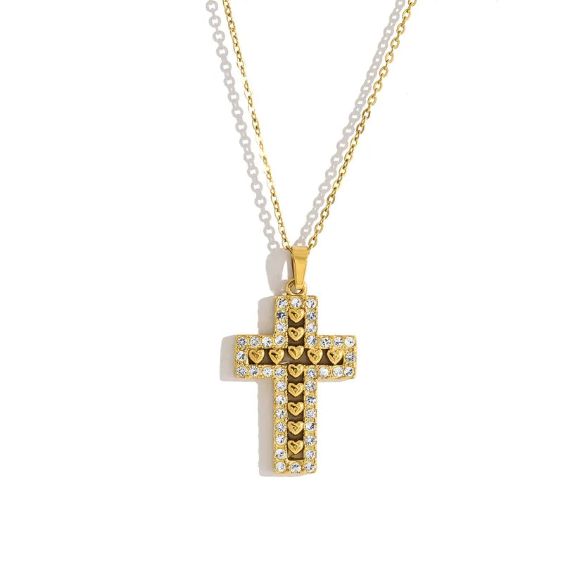 Κολιέ επιχρυσωμένο ατσάλι με σταυρό και zircon-NE446