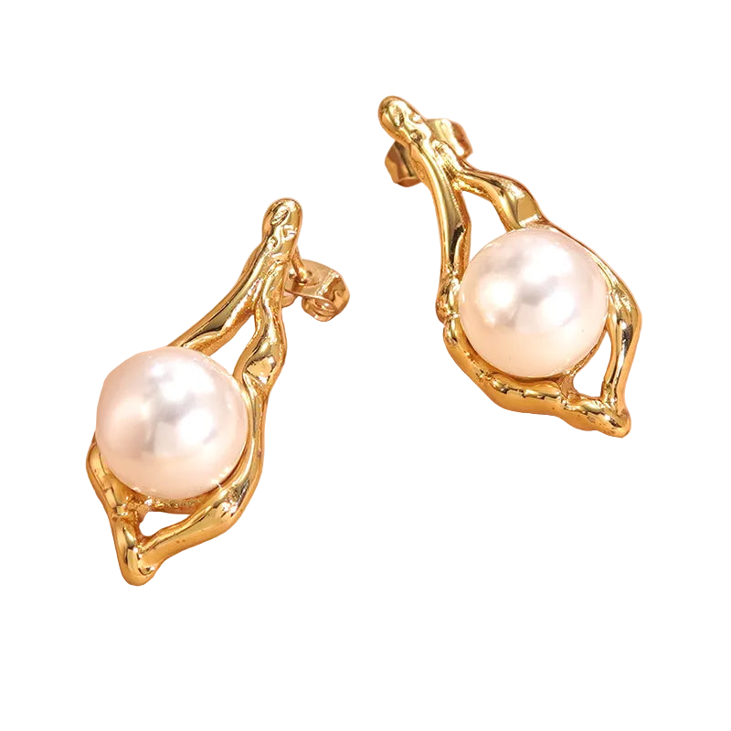 *Σκουλαρίκια ατσάλι με πέρλα-EA569