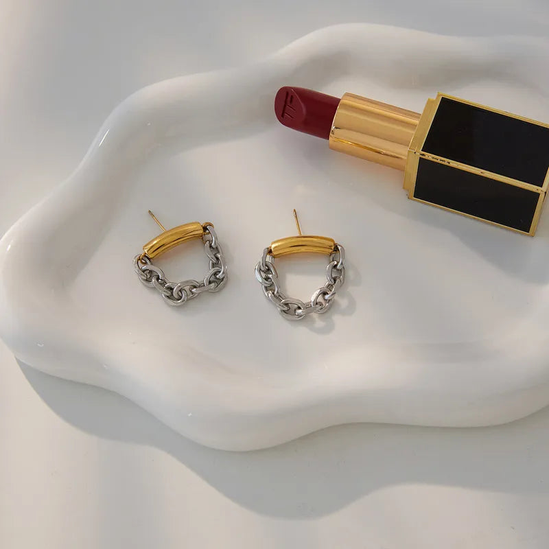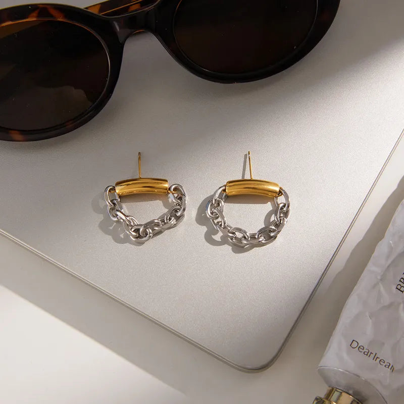 Σκουλαρίκια επιχρυσωμένο ατσάλι με ασημί αλυσίδα-EA508