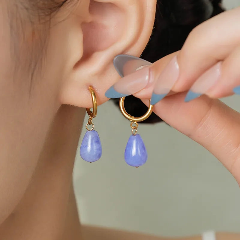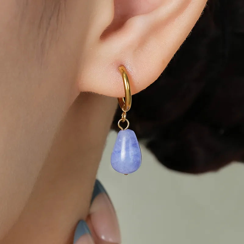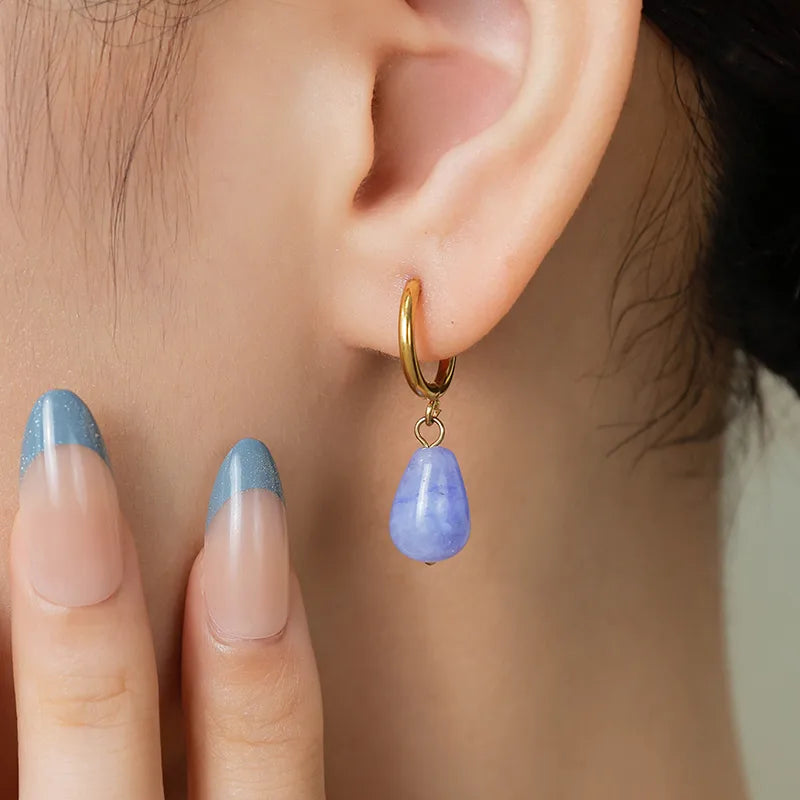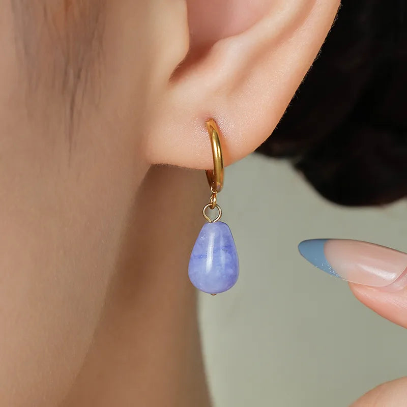 Σκουλαρίκια επιχρυσωμένο ατσάλι με γαλάζια πέτρα-EA412