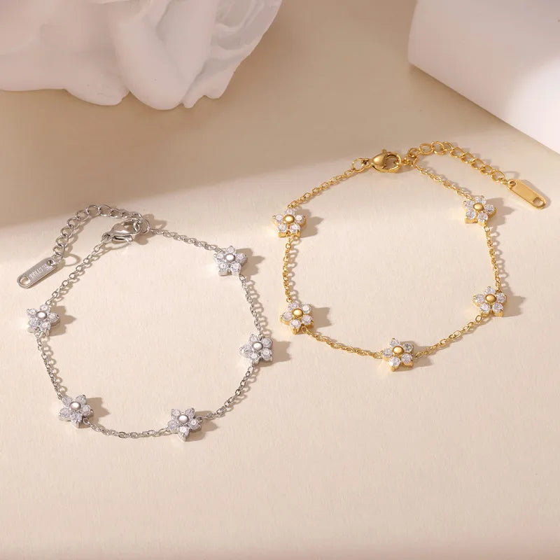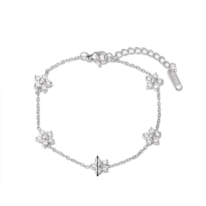 Βραχιόλι ασημί ατσάλι με αστραφτερά λουλούδια-BR096