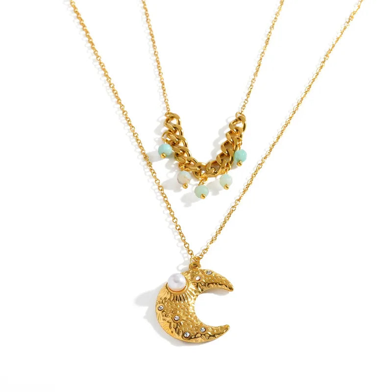Κολιέ επιχρυσωμένο ατσάλι διπλό με φεγγάρι και zircon-NE405