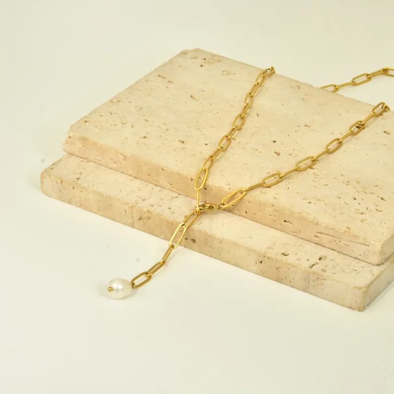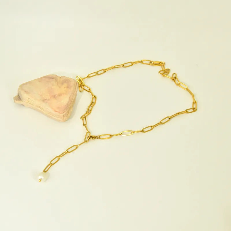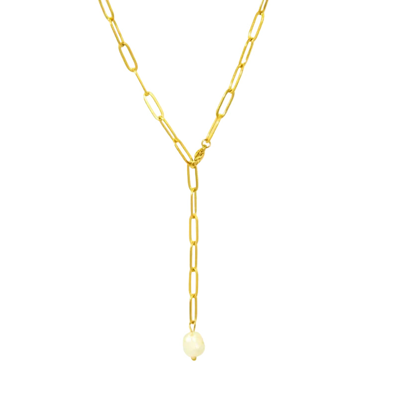Κολιέ επιχρυσωμένο ατσάλι με αλυσίδα και πέρλα-NE472