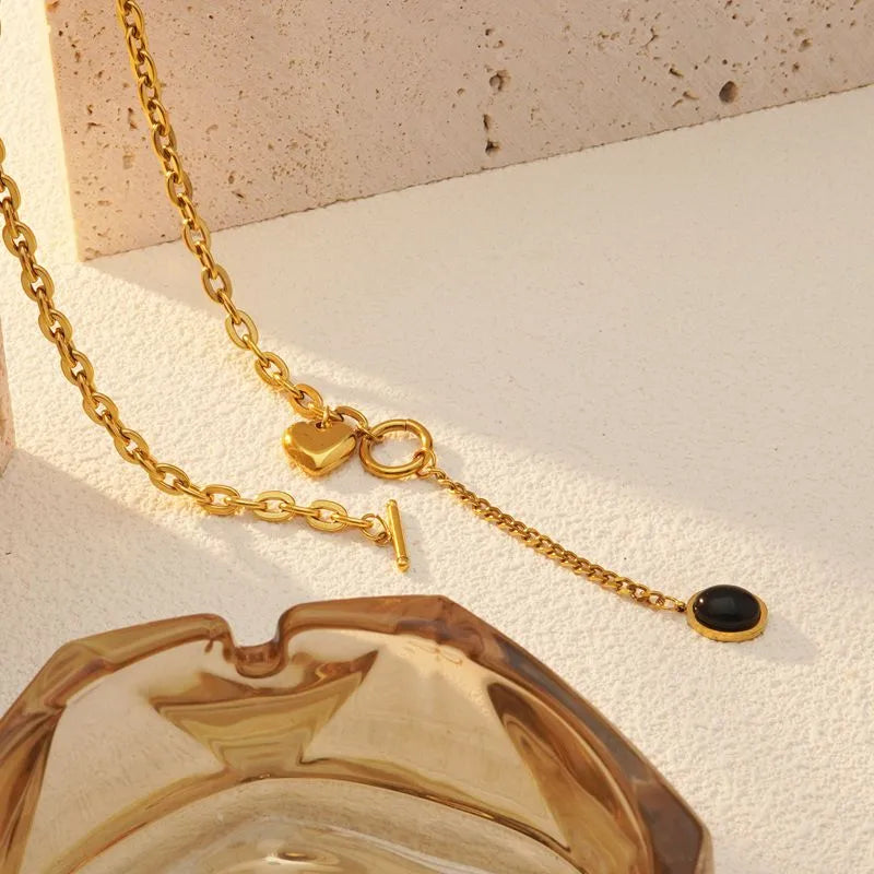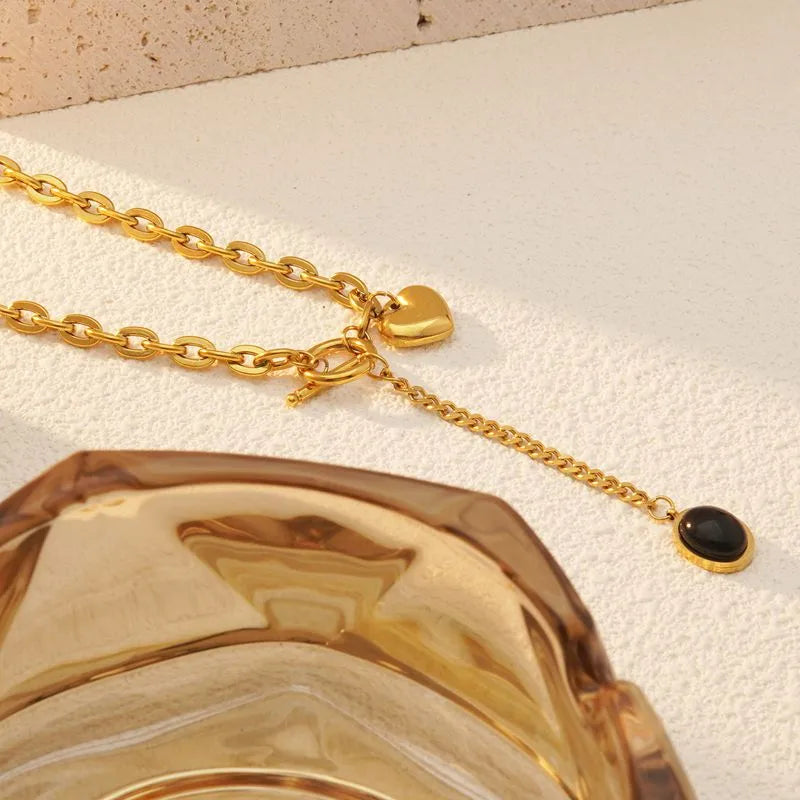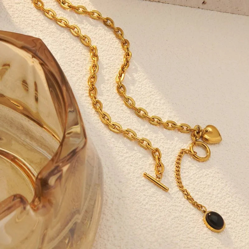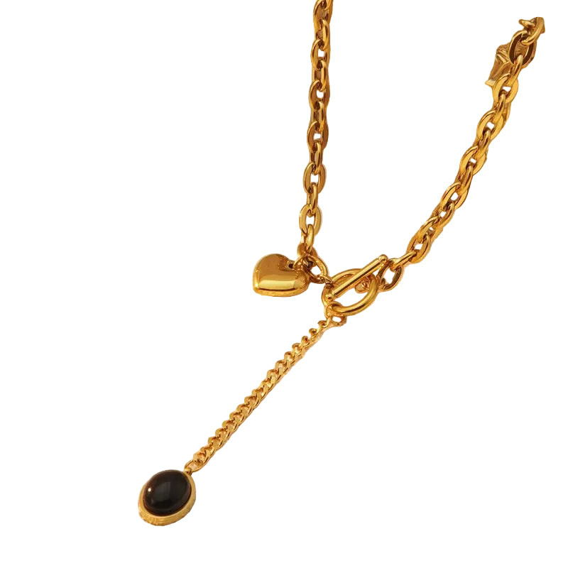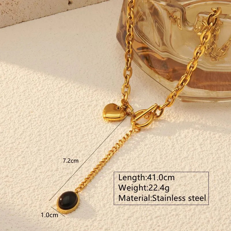 Κολιέ επιχρυσωμένο ατσάλι με μαύρη πέτρα-NE466