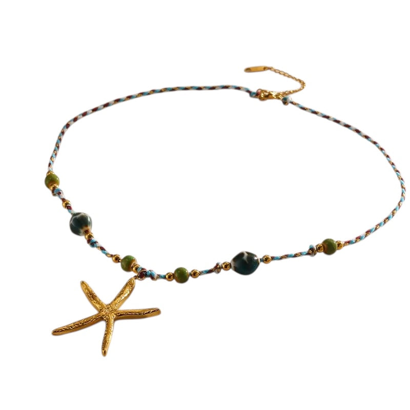 Κολιέ με κορδόνι και ατσάλινο αστερία - ne488
