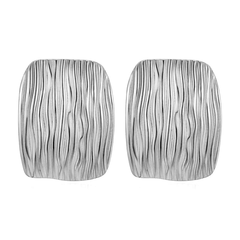 Σκουλαρίκια ατσάλινά ασημί με ρίγες - W014