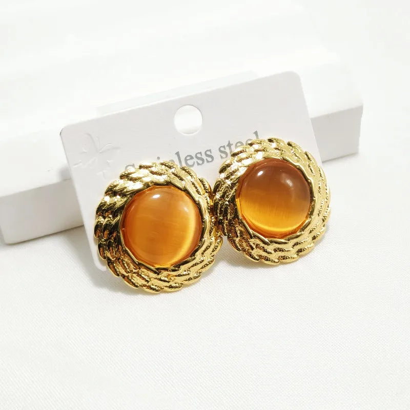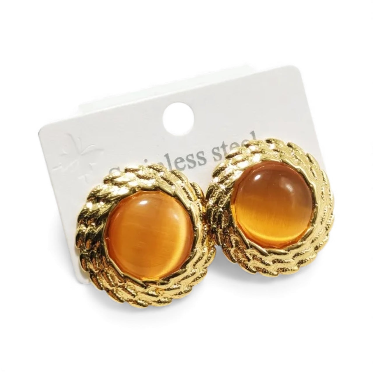 Σκουλαρίκια επιχρυσωμένο ατσάλι στρόγγυλα πορτοκαλί-EA662