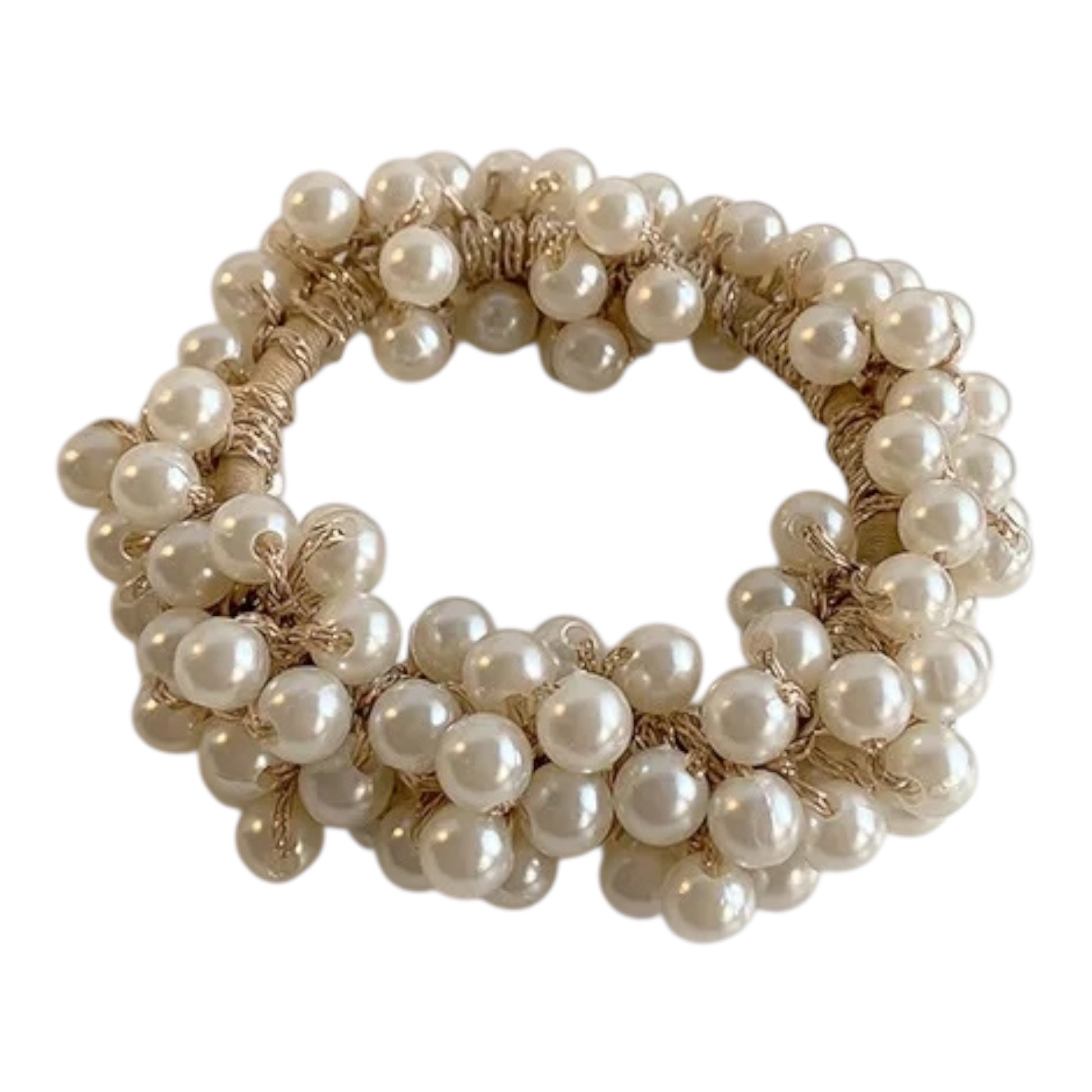 Λαστιχάκι χρυσό με λευκές πέρλες - HA002