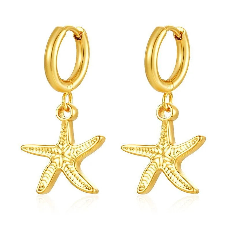 Σκουλαρίκια ατσάλινα χρυσά αστερίες - w453