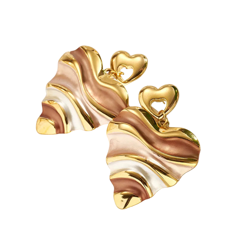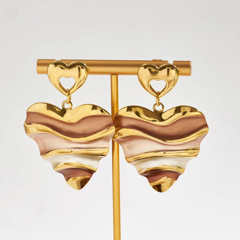 Σκουλαρίκια ατσάλι καρδιά με καφέ αποχρώσεις-EA524