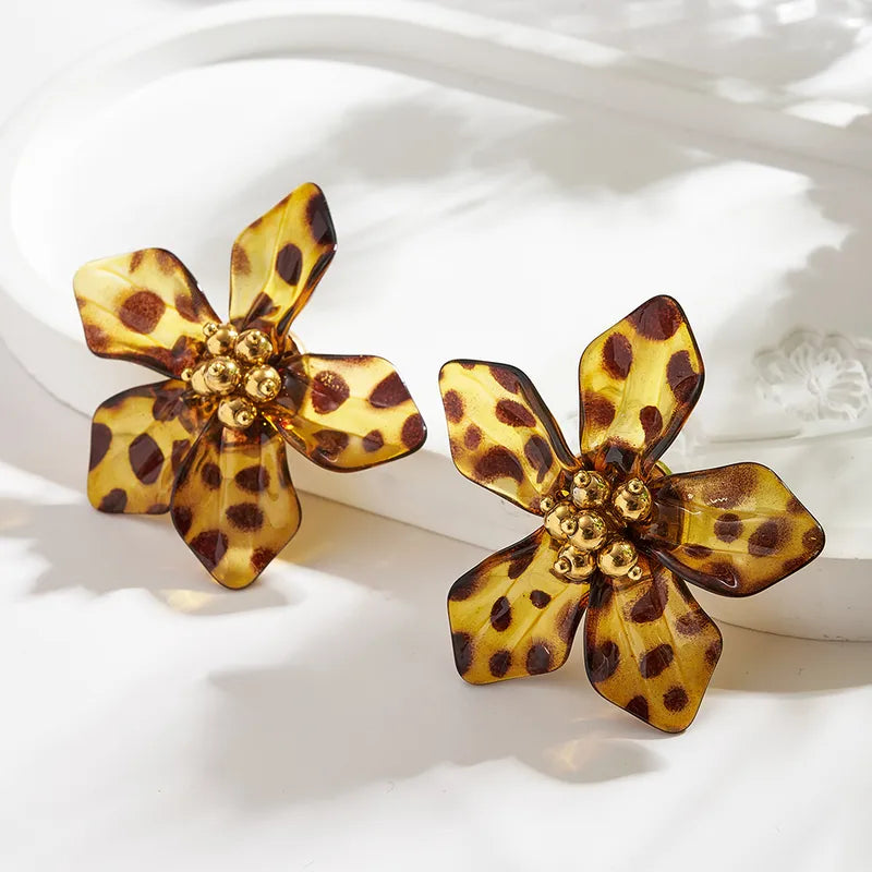 Σκουλαρίκια ατσάλι λουλούδια animal print-EA426