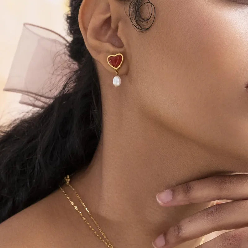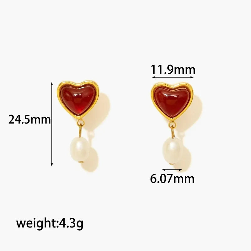 Σκουλαρίκια επιχρυσωμένο ατσάλι με καρδιά και πέρλα-EA171