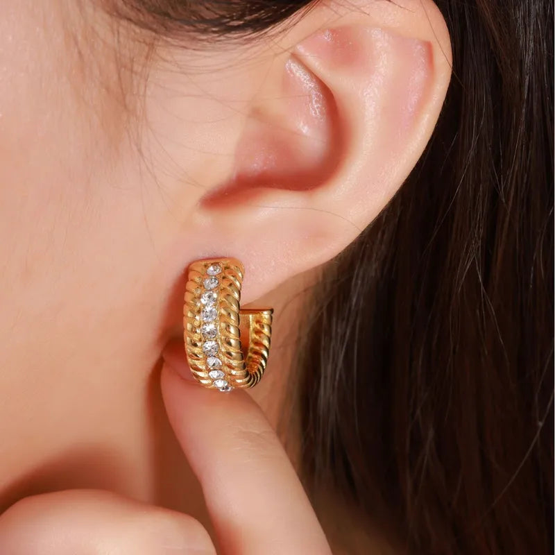 Σκουλαρίκια επιχρυσωμένο ατσάλι με στρας-EA291