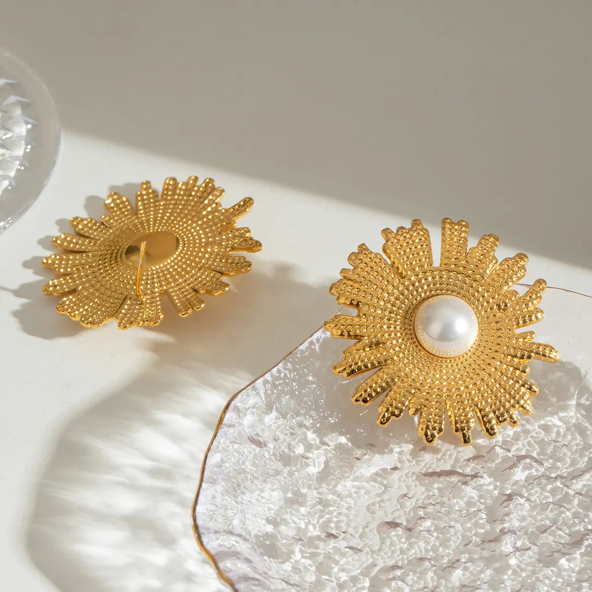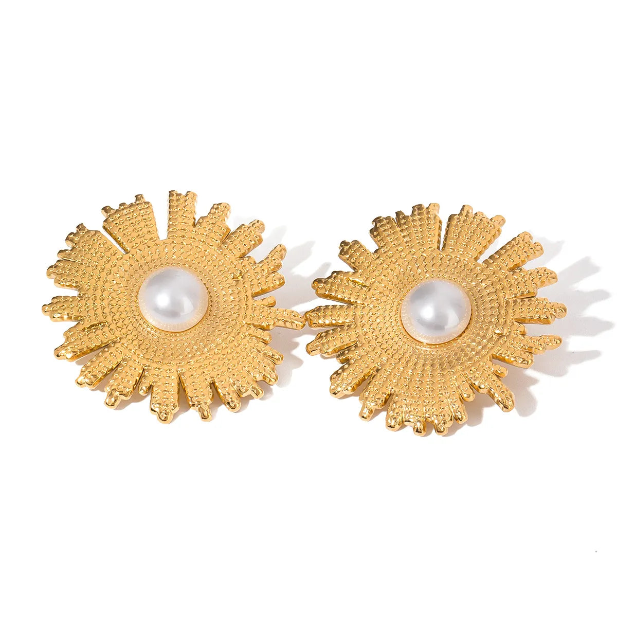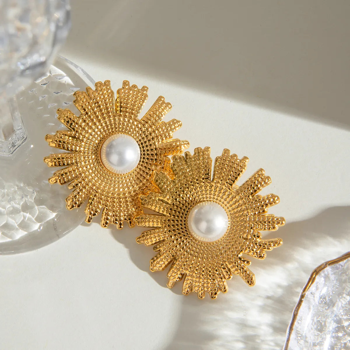 Σκουλαρίκια ορειχάλκινα με πέρλα - w105